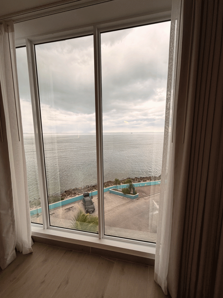 Here’s the view from our hotel room window. We could birdwatch from the window, and saw Royal Terns, Laughing Gulls and a Reddish Egret along with numerous Brown Pelicans.