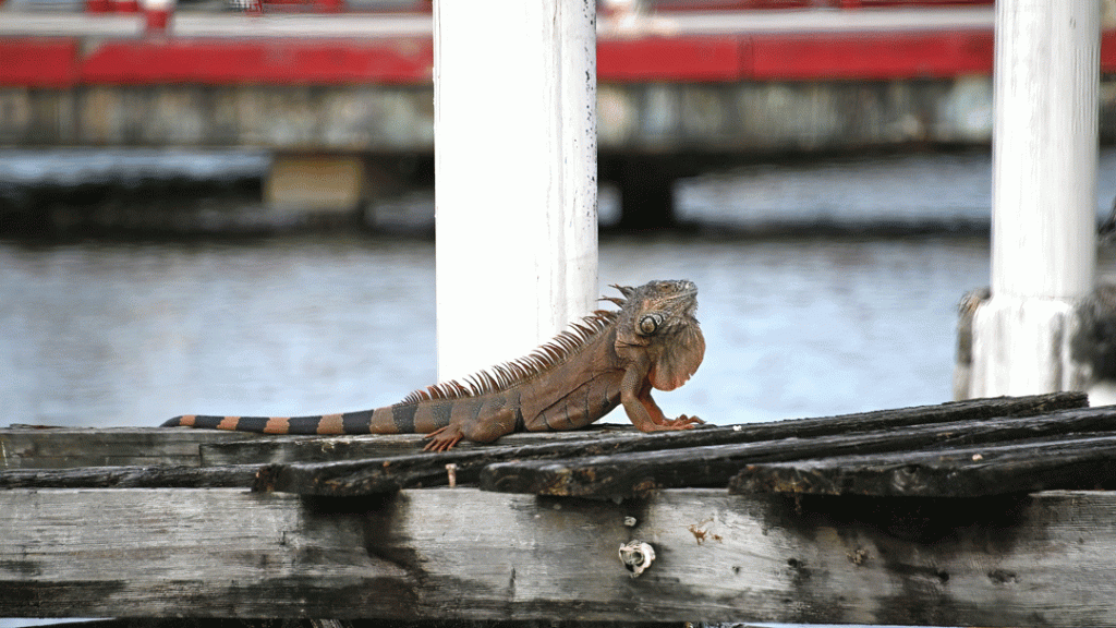 This Green Iguana hung out on a wharf near to shore. It was over a metre (40″) long.