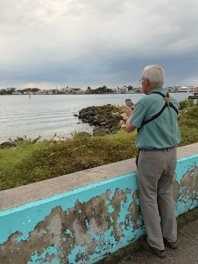 When we were planning for the trip, Doug decided that he really wanted to have a good look at a Morelet’s Seedeater. We had previously seen them along the Rio Grande in Texas, but we had brief and distant views. He was very excited when the seedeaters were foraging just below the sea wall. He took the photo of the little bird with his cell phone. Throughout the trip, we saw about forty of this species and they were included in eleven checklists, so they were a pretty common bird, but it was a good start to the trip.
