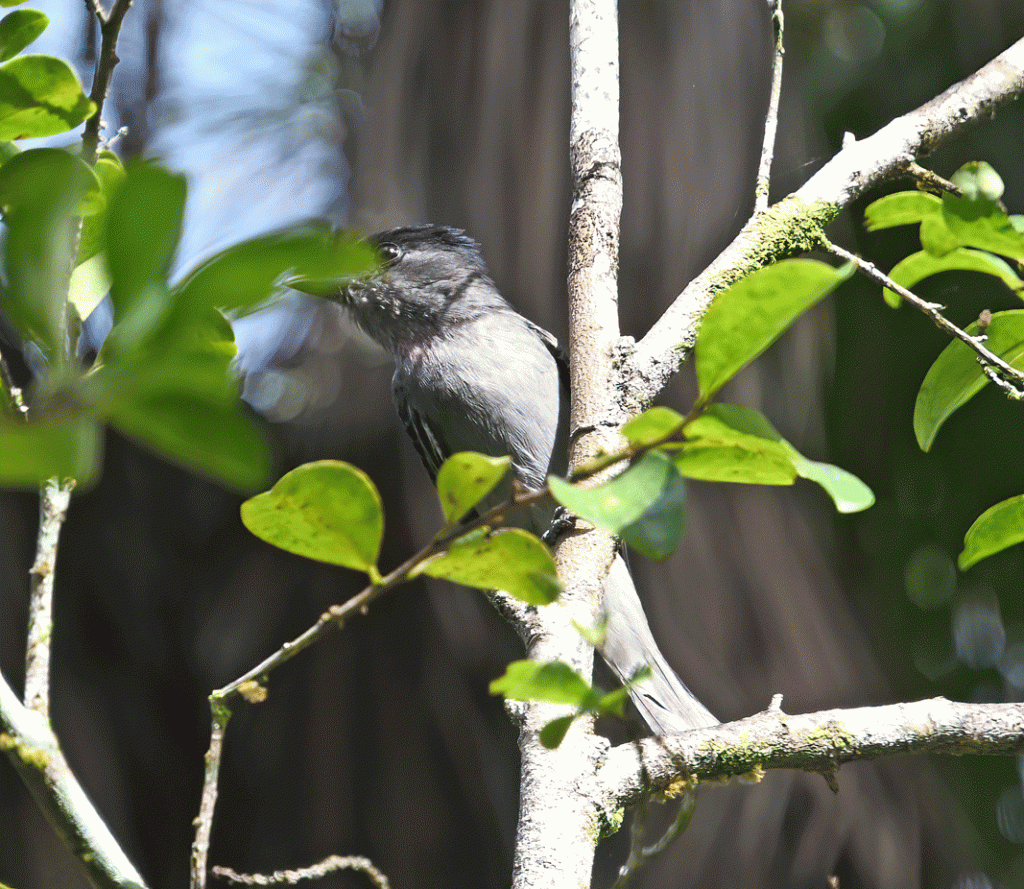If you look really closely, you can see a tiny bit of pink on this male Rose-throated Becard. This species is one that we have seen in Arizona and in Texas, but they are usually high up in the canopy, so seeing this one so close was a treat. The rainforest birds of this species are dark slaty gray and may not show a pink throat patch, making them look appreciatively different from the ones we have seen in Arizona.