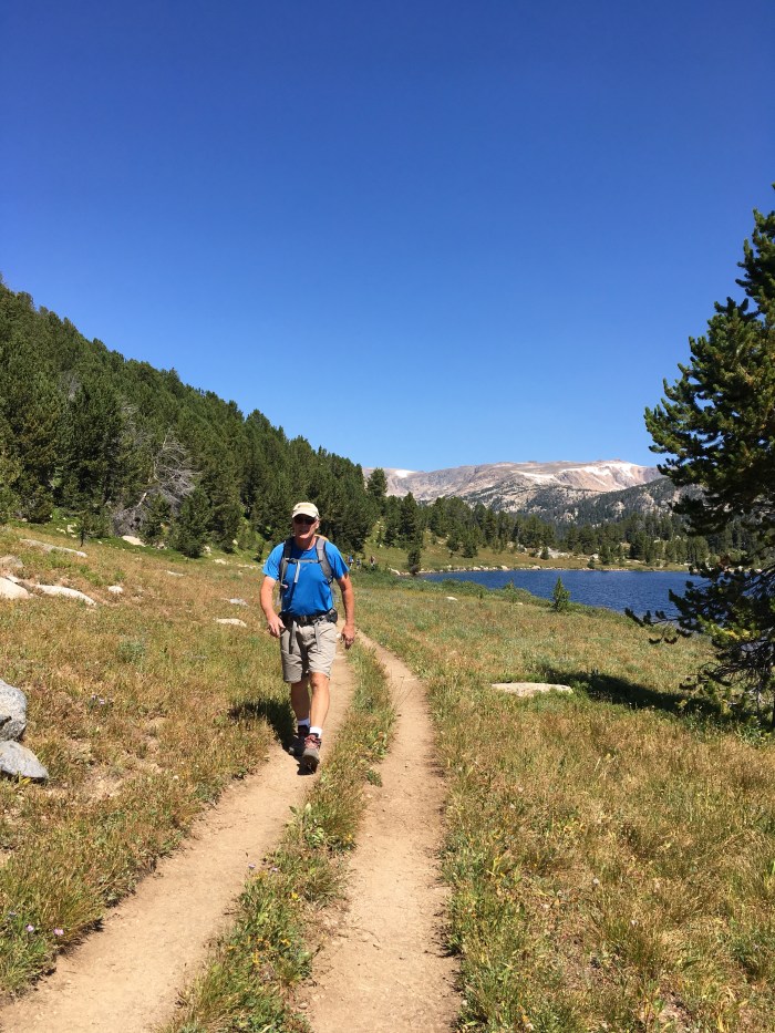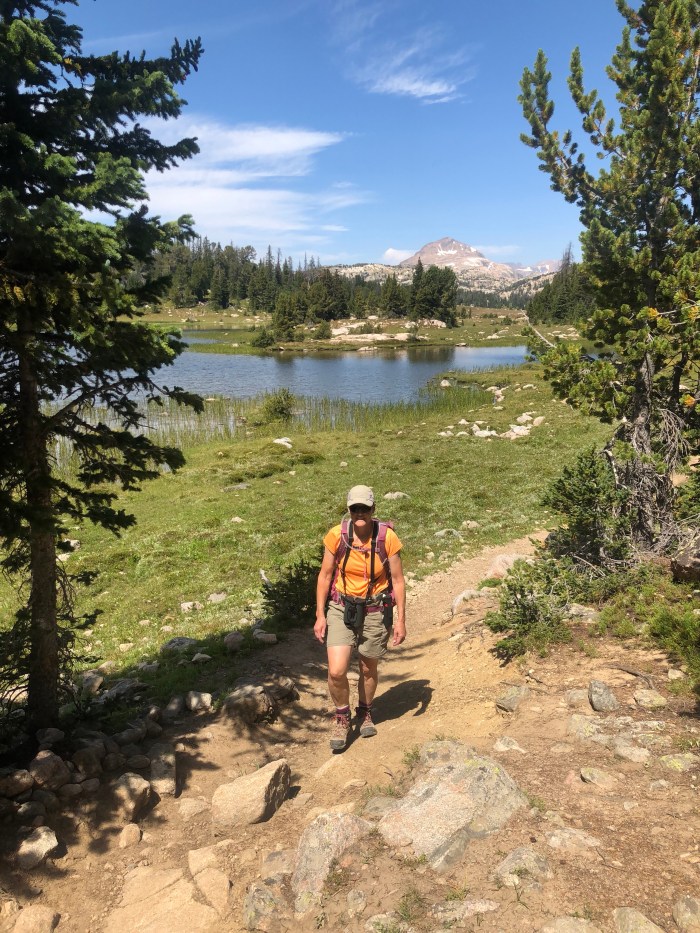 We drove over the pass and into Wyoming to the Island Lake campsite and trailhead and set off for a short hike. The flowers were past their prime but still beautiful. The fairly level trail goes by a number of lakes. It’s was wonderful to start a hike at 9,500 feet. No trudging uphill to get to the views!