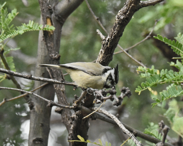 Further along the trail, in a nice shady area, we saw numerous Bridled titmice, some Black-throated grey warblers and a couple of White-breasted nuthatches. All the birds were darting in the among the trees, but Doug was able to get a photo of one Bridled titmouse.