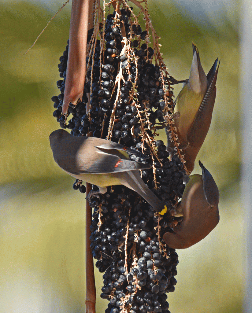 … but were also impressed with these Cedar Waxwings feeding on Palm Tree fruit.