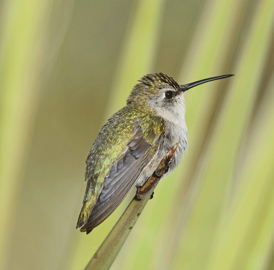 The hummingbirds love the gardens at the Desert Museum, especially since many of their favourite flowers are planted there. Here’s a close-up of a female Costa’s Hummingbird.
