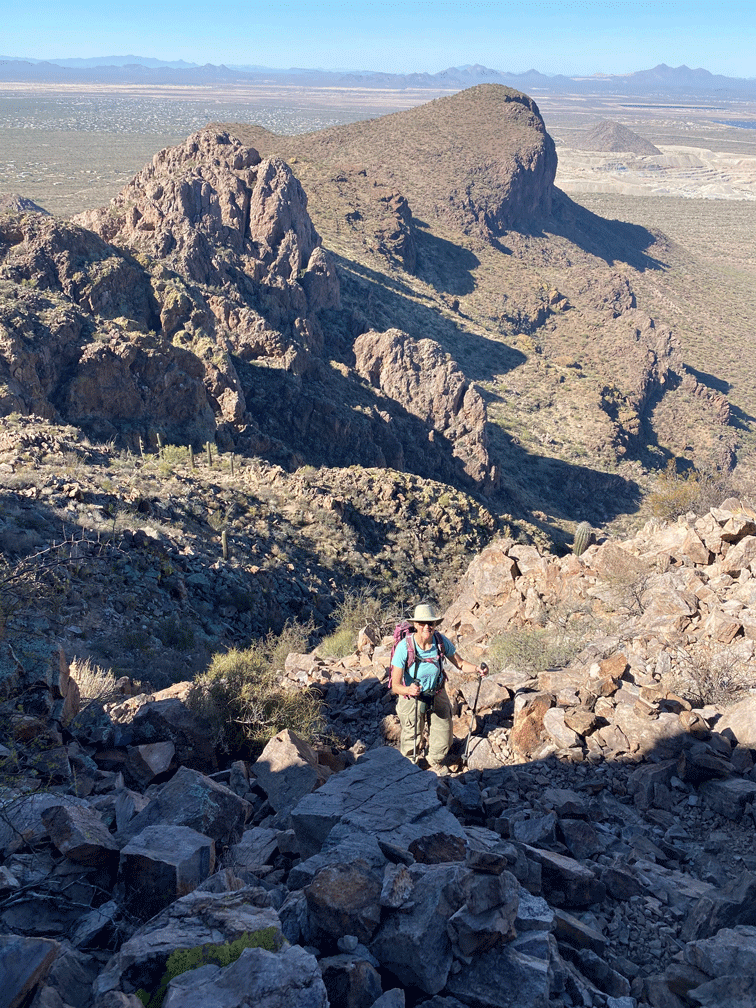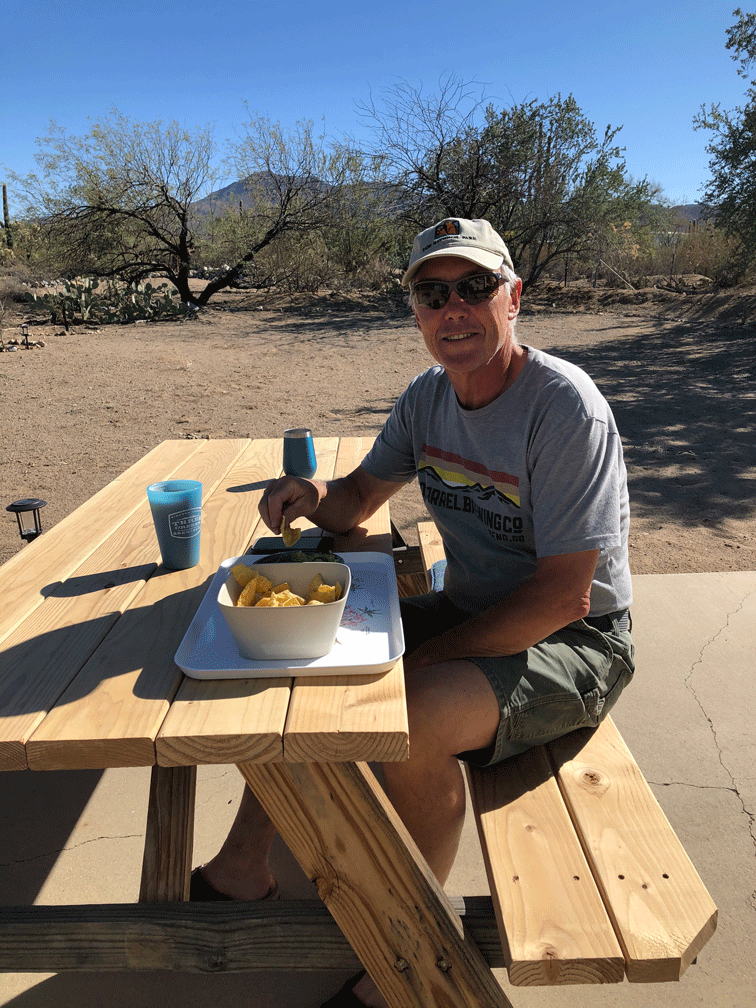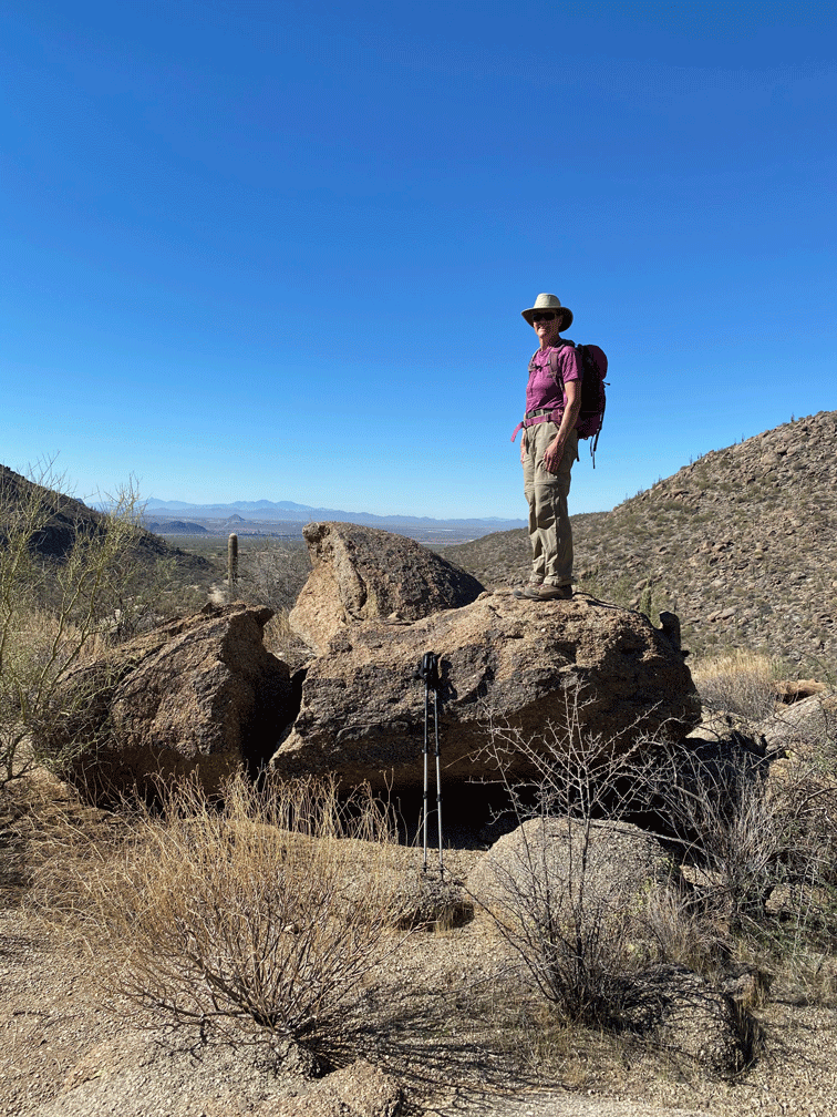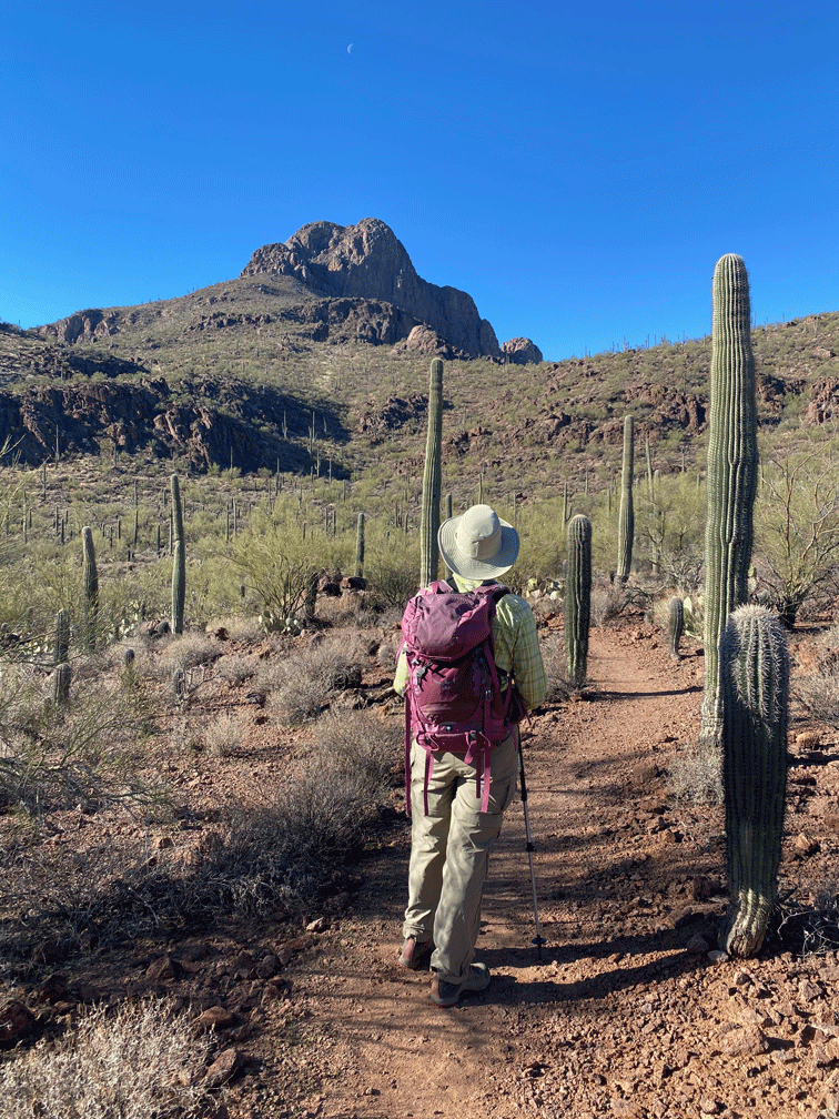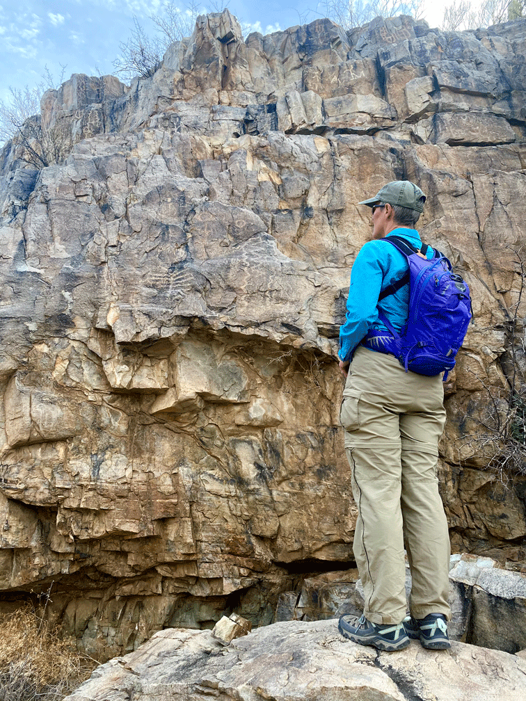 We were here to see any birds that we could, but specifically, the Rufous-backed Robin. We have yet to see one, although we have seen a few American Robins. Wendy is probably looking at an Abert’s Towhee, which are numerous and robin-sized.