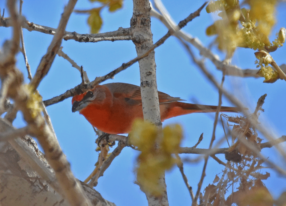 While searching for the robins, we were rewarded with a view of this male Hepatic Tanager. Mostly they winter in Mexico, so this fellow is at the northern edge of his range.