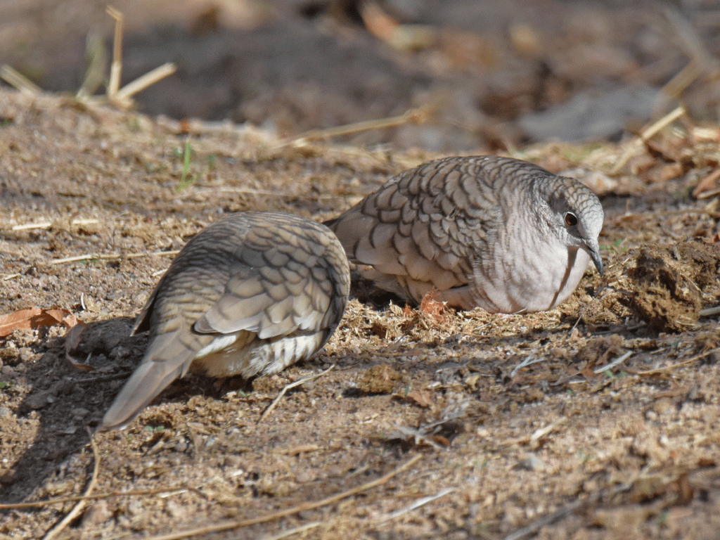 These Inca doves were foraging near the riverbank. They are very small and slender doves with dark-edged feathers that give them that scaly appearance.