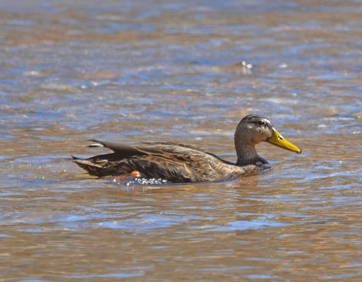 We got a good look at this Mexican duck. Both the male and female resemble a female Mallard and is included as a subspecies of mallard in older field guides. The male below has a distinctive yellow bill and his wings in flight show narrow white bars rather than the bold white bars of a Mallard.