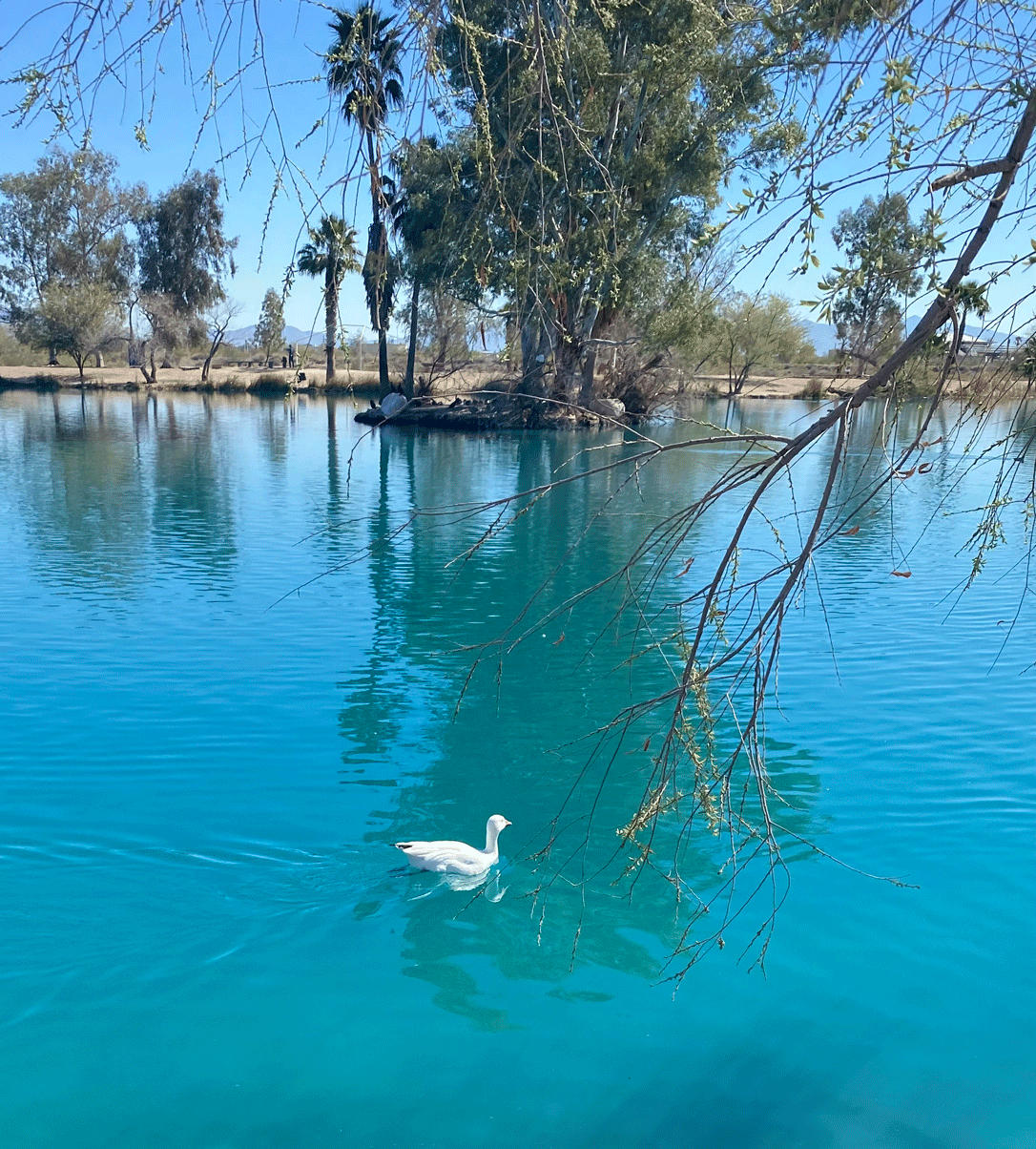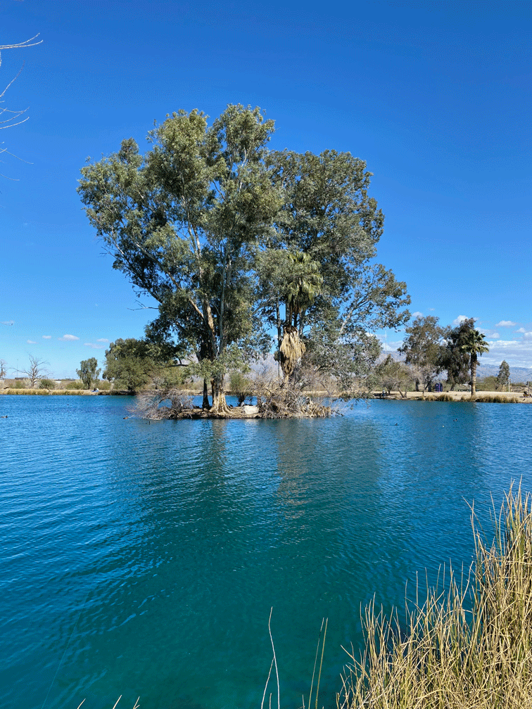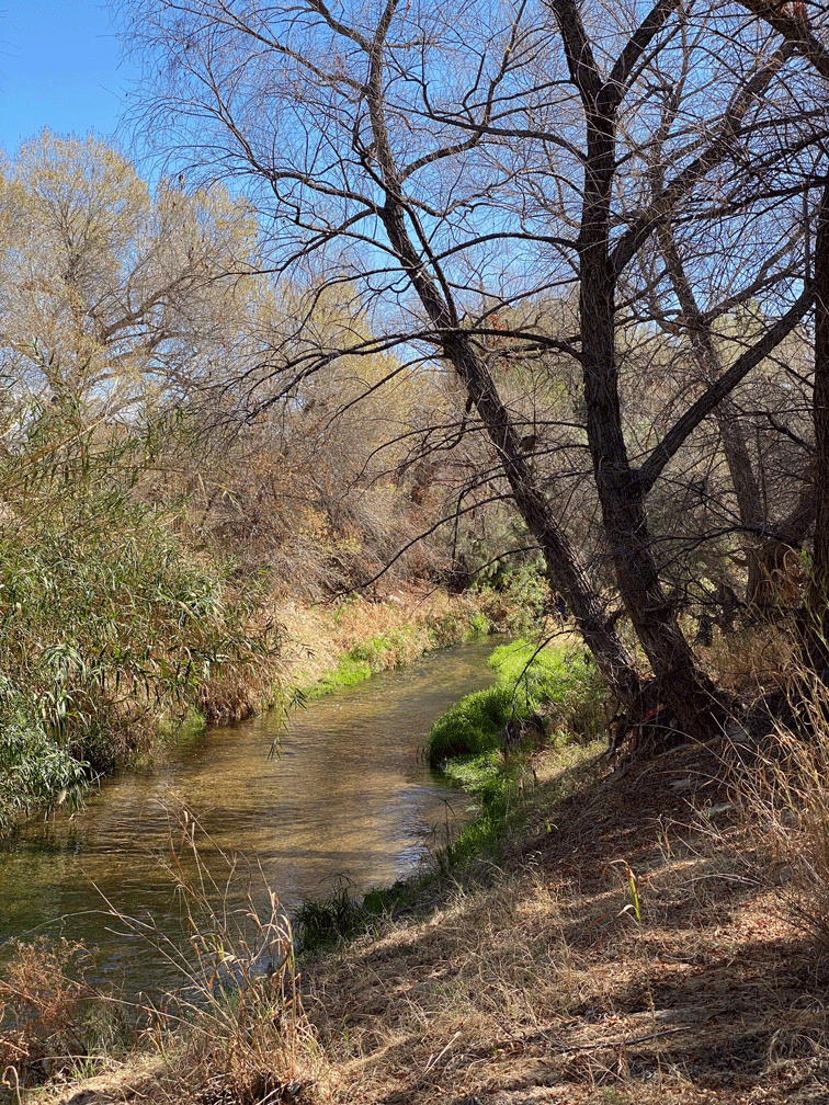 One of the times that we birded at Santa Gertrudis Lane, we also accessed the Anza trail in Tubac. We were hoping to see a special little bird way up in the cottonwoods. Not this time, but we have this view for you of the cottonwood trees and blue sky instead. Just being in nature is reward enough.