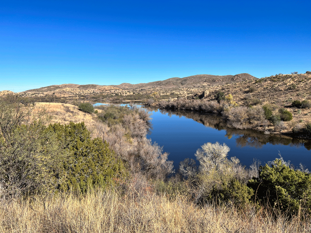 Arrivaca Lake is a beautiful spot south of Tucson. We’d never been there and wanted to explore a new area. Like many lakes in Arizona, it is dammed which means it has virtually no shoreline. It would be ideal to bird it from a kayak or canoe, but very difficult on foot. We’ll probably never see the Green Kingfisher that has been spotted there. But we had a bit of an adventure climbing the ridges around the lake and we had a nice look at a Belted Kingfisher.