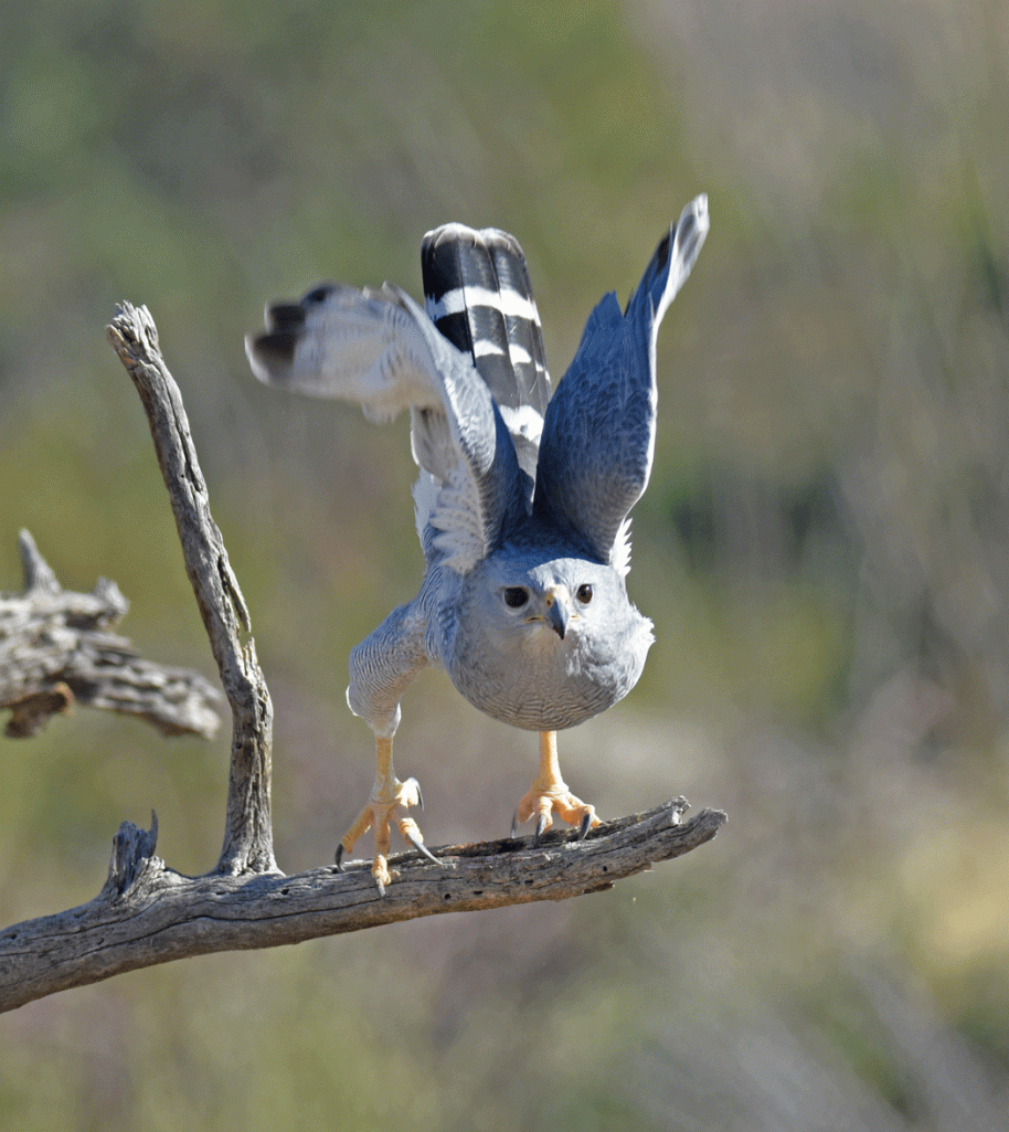 The Arizona-Sonora Desert Museum is a great place to see birds. Most are wild birds that enjoy the habitat that the grounds provide, but some are captive birds that are trained to participate in the museum’s “Raptor Free Flight” program. Below are two photos of a Gray Hawk; one as it’s landing and one as it’s taking off during the program. Gray Hawks sometimes make their way into the Tucson area and we were lucky enough to see one in the wild last spring.
