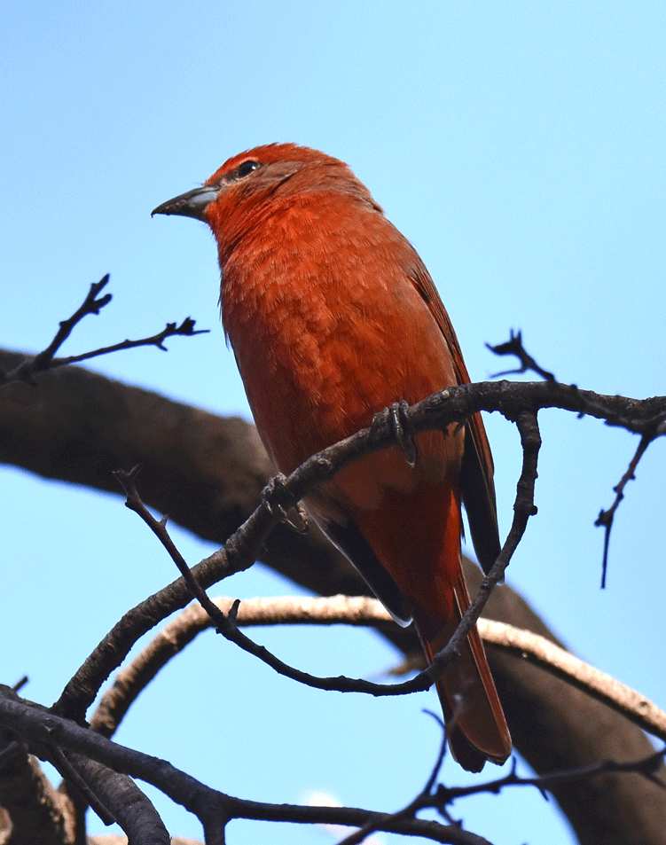 This Hepatic Tanager looks a lot like a Summer Tanager, but has a dark bill and a darker face. It’s found in pine-oak forests, which includes Madera Canyon, but they don’t venture much farther north than the Arizona border.