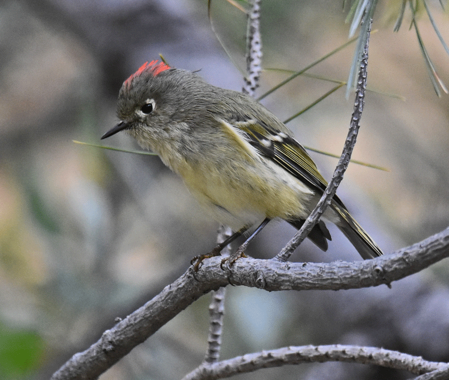 We like to think that the Ruby-crowned Kinglets that we see here in Arizona, spent their summers in Canada, but there is no way of knowing. Usually, the ruby crown is hidden, but this fellow had it on display for us. He was also at Madera Canyon.