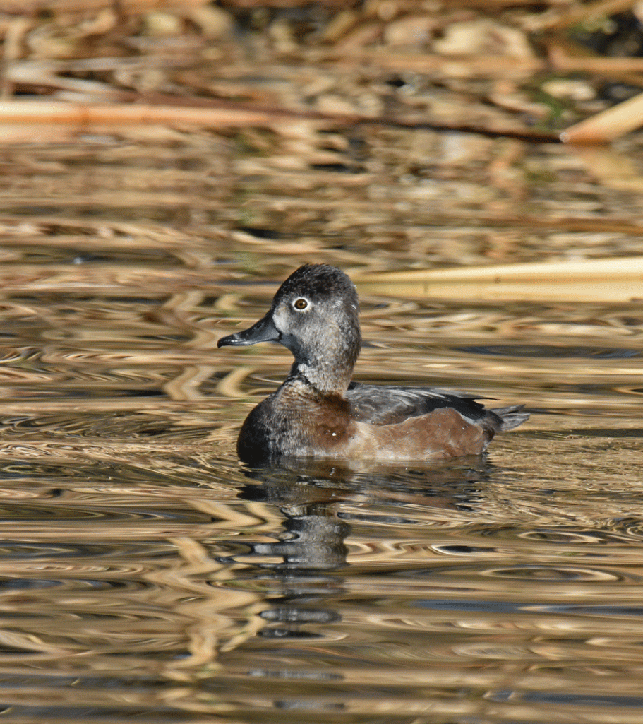 We go birding at Sweetwater Wetlands regularly. Sometimes, we can get a good view of a bird but have a hard time identifying it. This Ring-necked Duck is a good example. It was by itself, and not in breeding plumage.