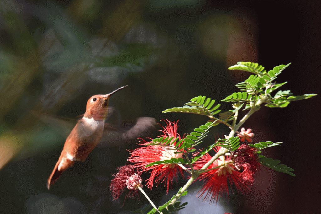 Rufous Hummingbirds are only in the Tucson area during migration. They are the most common ones that we see at home in BC.