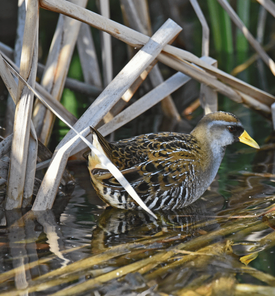 And sometimes a bird likes to hide in the reeds and we are lucky if we see one. This Sora ventured out for brief moments allowing Doug to get a few photos. We were examining the reeds very diligently this day, because an American Bittern had been seen in the area over the previous days. We didn’t see the bittern, or perhaps I should rephrase that to say: we have yet to see the bittern, because we will keep looking.