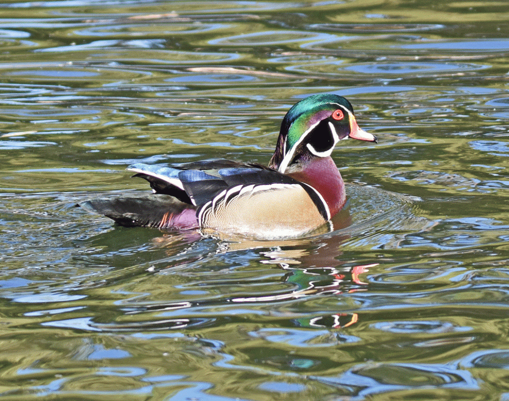 Sometimes it’s really hard to find a certain bird because birds have that tendency to fly anywhere they want. But sometimes it’s really easy. This Wood duck was in a pond at Reid Park, in the centre of Tucson. The hardest part was locating him among the hundreds of other ducks (Mallards, American Widgeons, Ring-necked Ducks) but he was very distinctive. He cooperated by swimming close to the edge of the pond. Wood ducks have been known to winter in the area, but they still make it into the “Rare Bird Alert” on our eBird app.