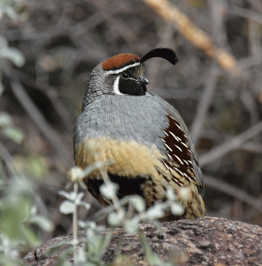 The rock that we just came down is in the background. Next, we followed the tracks up a cone of sand.