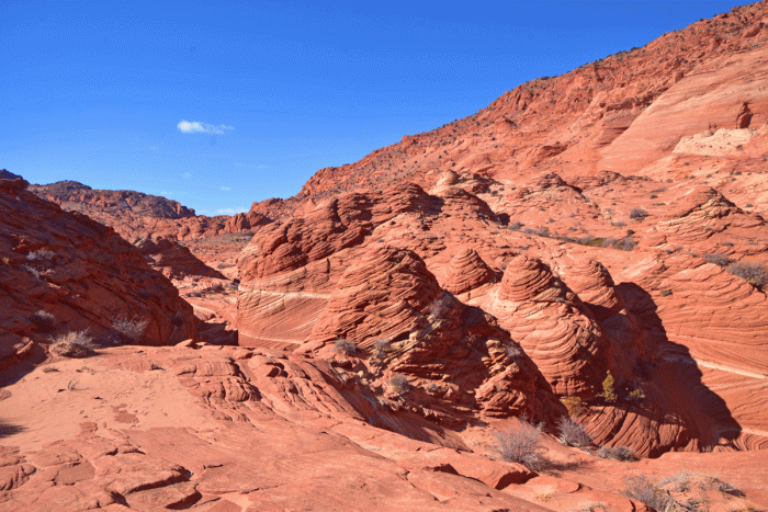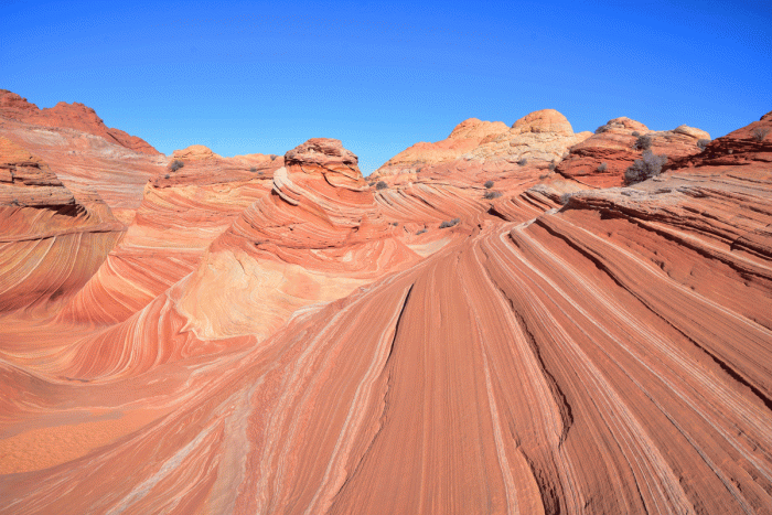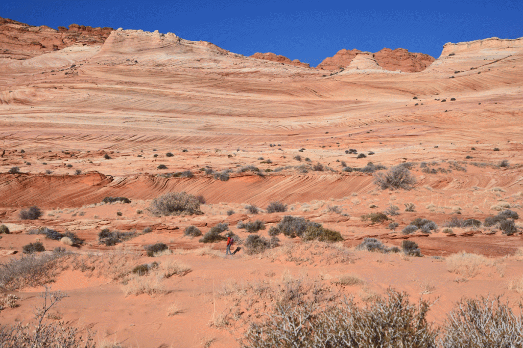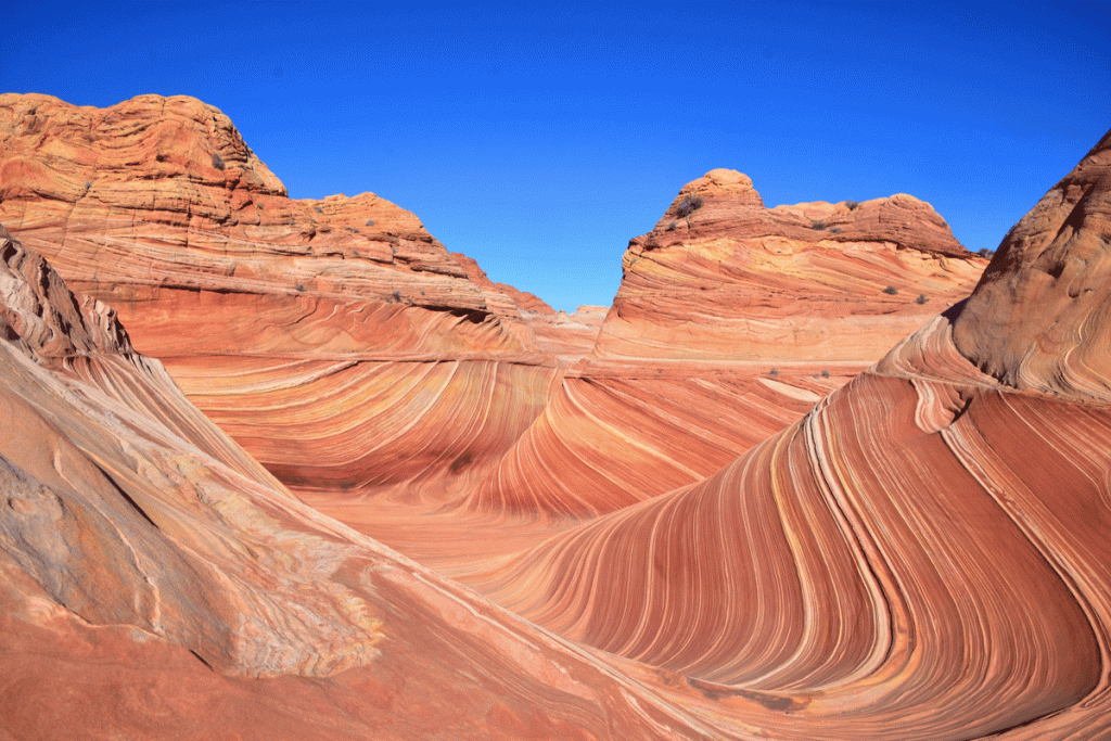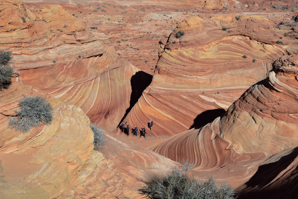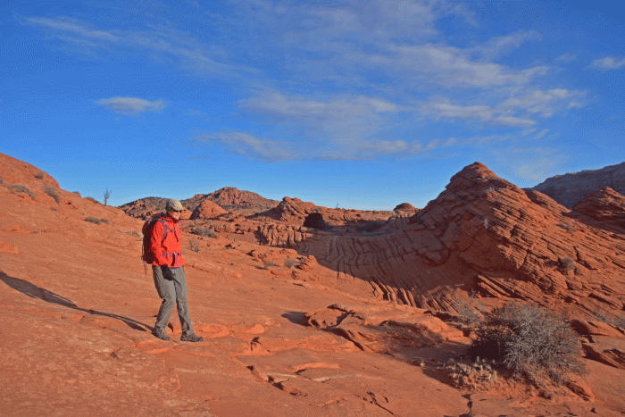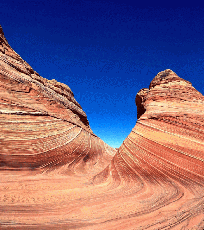 The Wave is a premier photographic destination in the US southwest. It is so popular that is requires a permit issued by lottery, limiting the number of visitors that are allowed per day. We obtained ours on-line from the US Bureau of Land Management after being unsuccessful over a dozen times. So we were really happy to get a chance to go. Although “The Wave” is in northern Arizona, it is accessed through Utah. It is only one of many interesting rock features in the North Coyote Buttes, but it is the most famous.