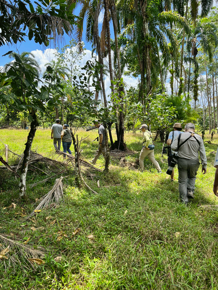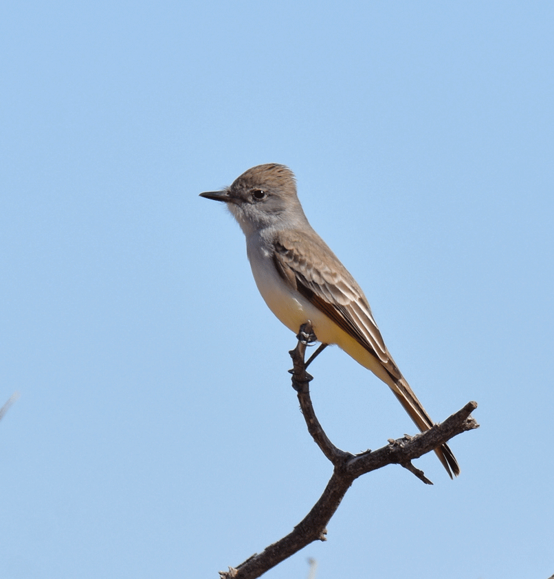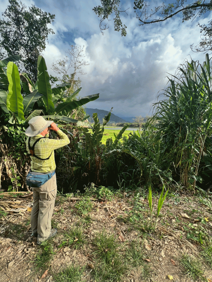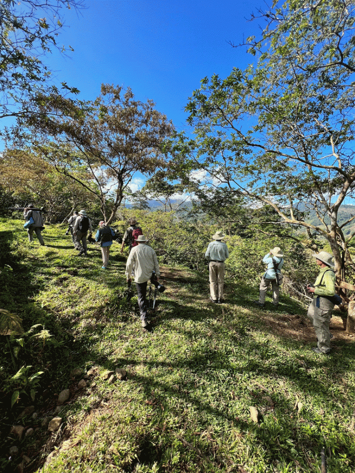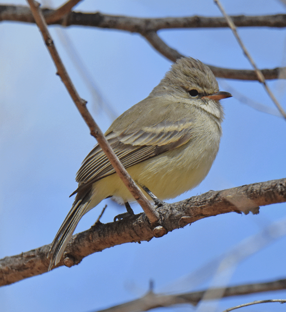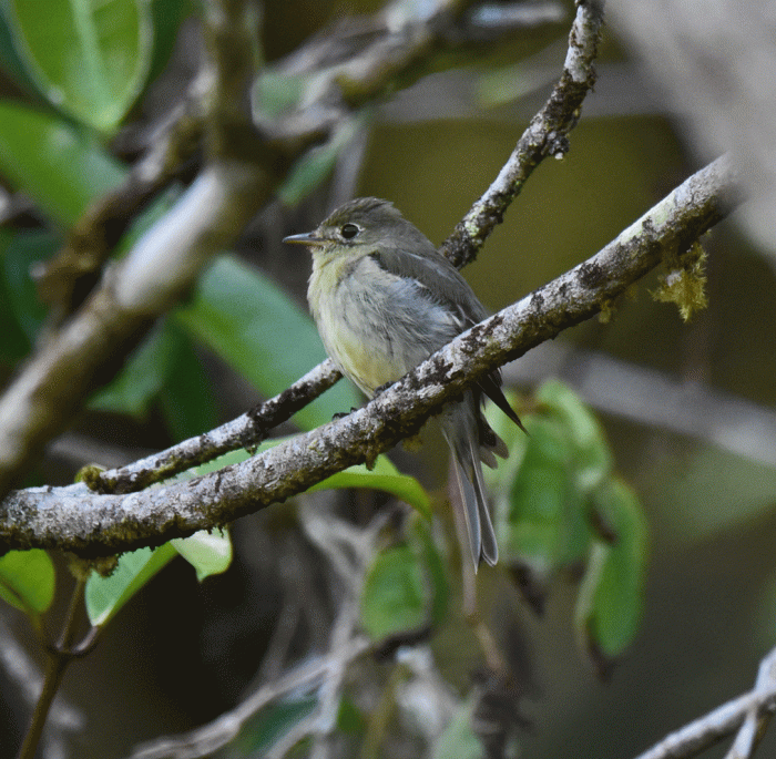We found a spot that had good views of the surrounding trees, because we were hoping to see a cotinga. We waited quite a while with nothing happening, so Wendy walked up a bit from the group, following the sound of a small flycatcher. She recorded its call so she could study the recording to help identify the bird. On a whim, she played the recording back and the bird responded by flying closer and perching nearby. Soon after, Doug joined her in the shade and she played the recording again. The Yellow-bellied Flycatcher perched close enough for Doug to get this photo. Yellow-bellied Flycatchers are the most common migrant empid. flycatcher around, spending its winters in the tropics and its summers in Canada, but they are not found southeastern BC where we live.