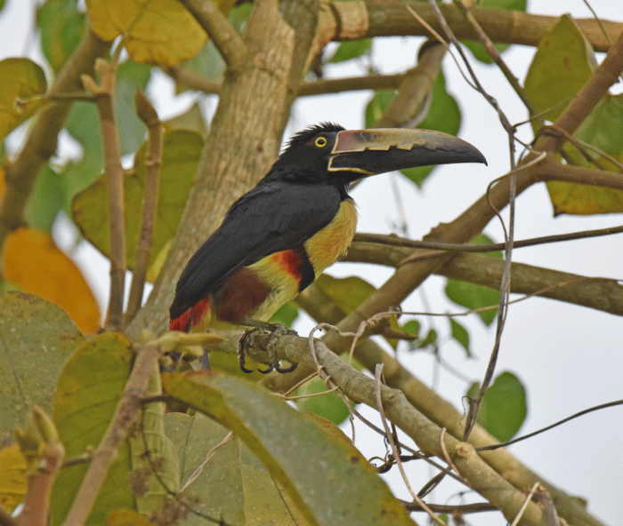 We saw a Collared Aracari in a tree alongside of the road. It is in the same family as the toucan but a little smaller (about 40 cm).