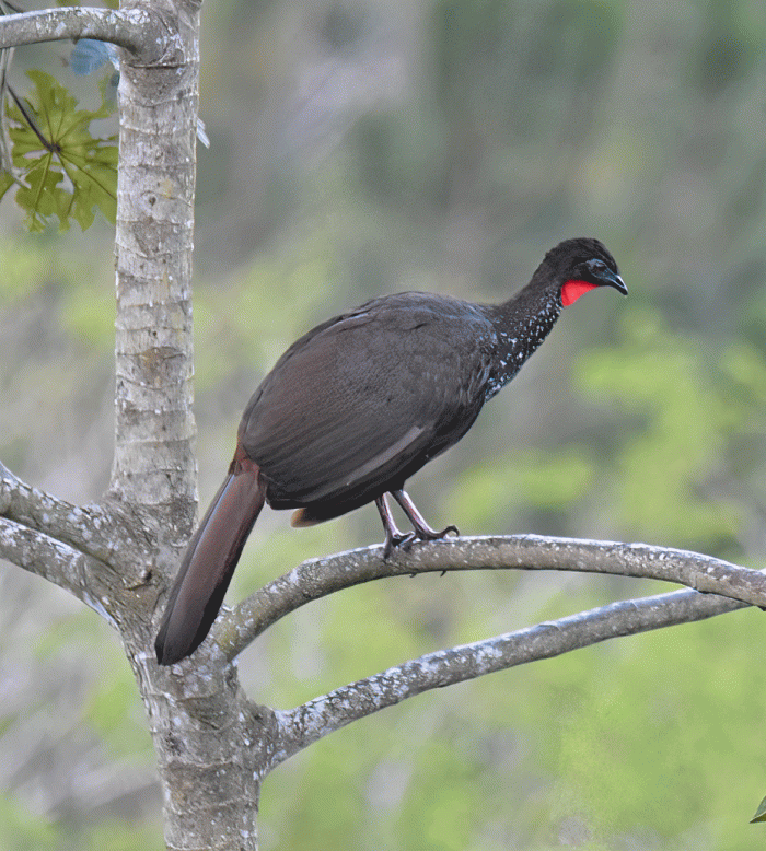 The deck also overlooked the mountains and the valley below the lodge. This is a Crested Guan, which mostly stays in the trees which is surprising for its size. It was feeding on fruit in a tree about a hundred metres away from the deck.
