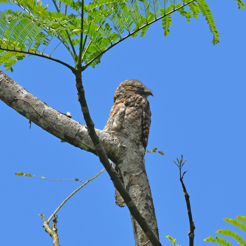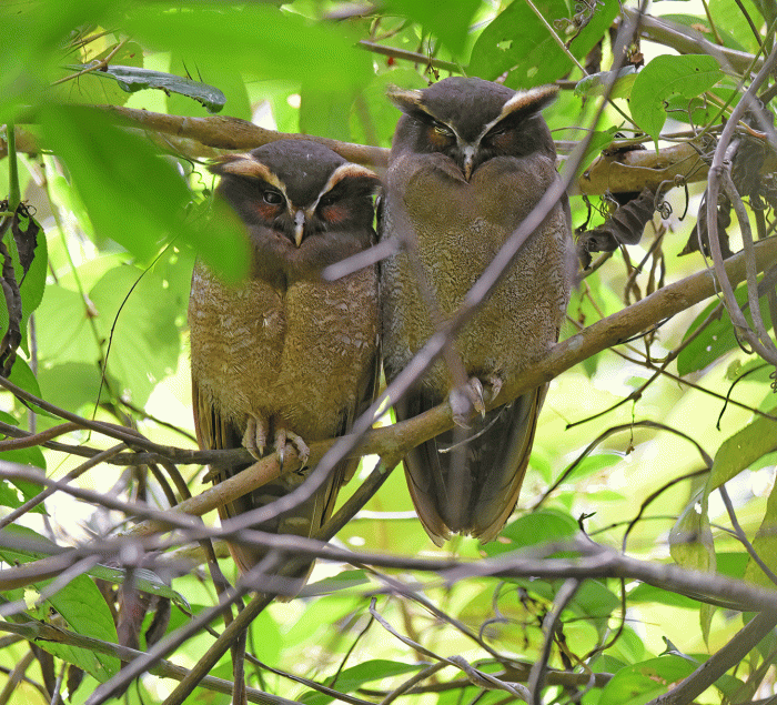 Further along the trail, our guide found a spot where two Crested Owls were roosting. We were quite a ways from them on the trail so they weren’t bothered by us, although it might be hard to tell from their expressions. They were the same species that we saw two days before.