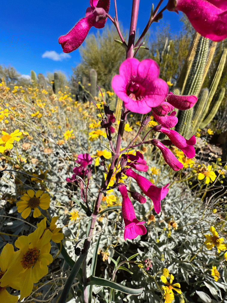 This is Doug’s photo of a Rufous-tailed Hummingbird, sipping from the purple verbena flowers.