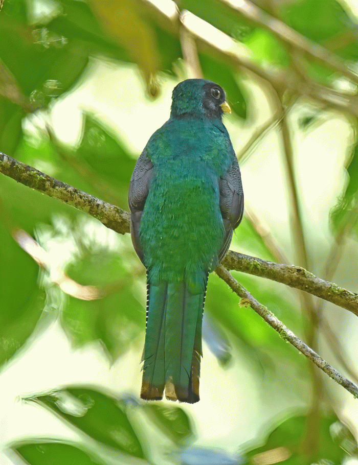 This Collared Trogan allowed us good views of its beautiful back, but we couldn’t convince it to turn around and show us its reddish belly.