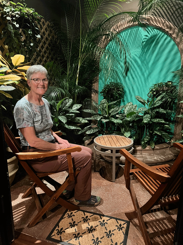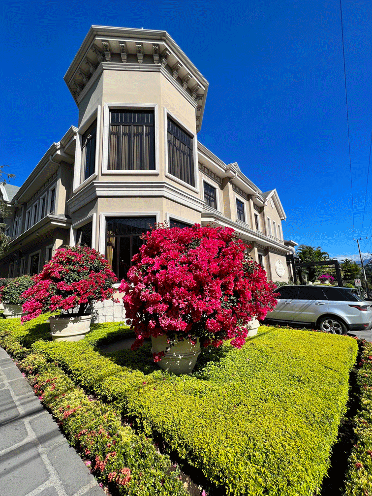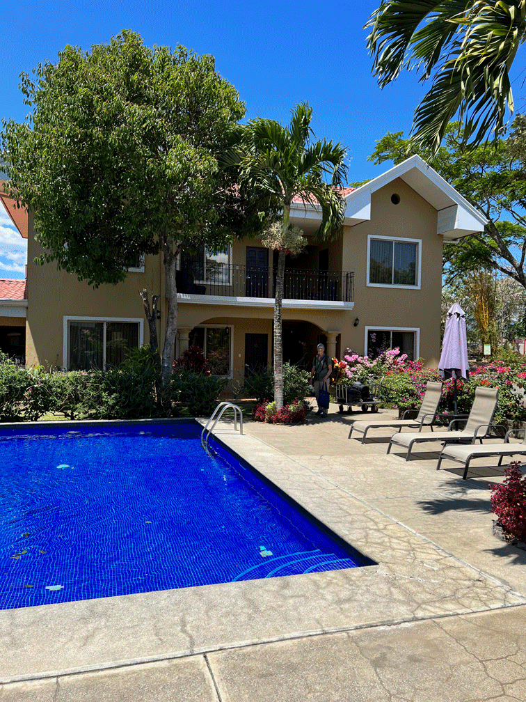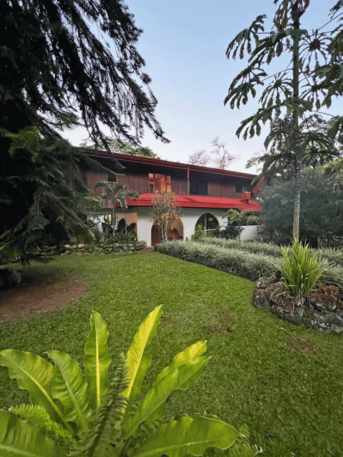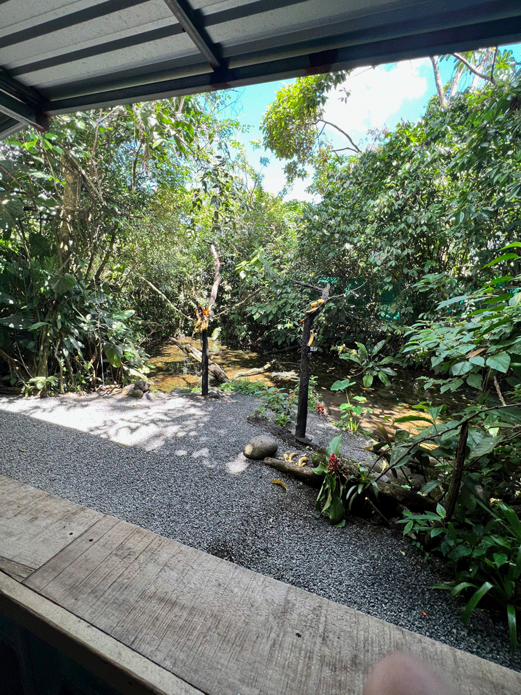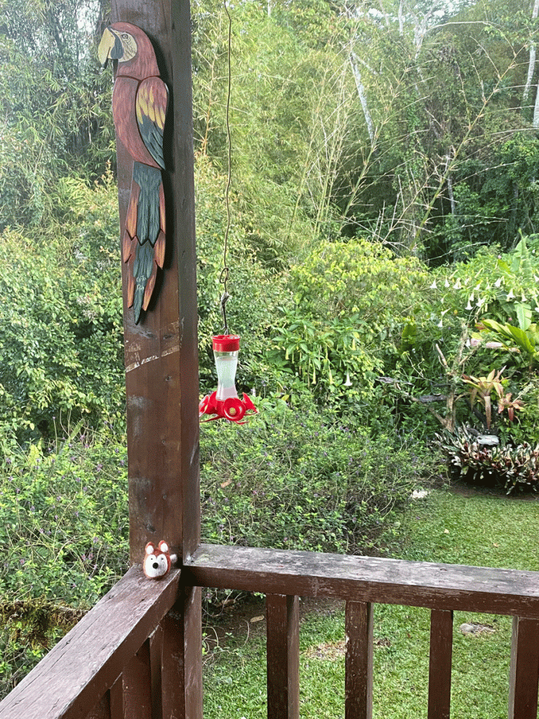 Here’s a view of the garden and one of their hummingbird feeders. White-necked Jacobins were the most plentiful hummingbird.