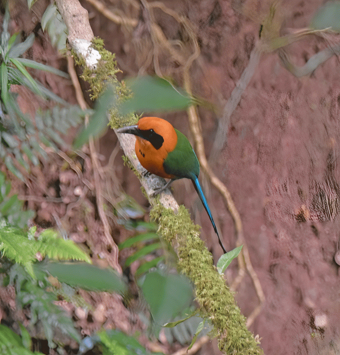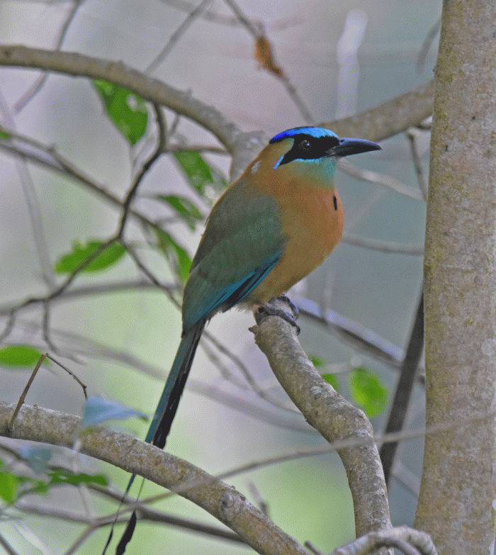 This is a Lesson’s Motmot, a species we saw several times on the trip. Most motmots have long racquet-tipped tails which they swing like pendulums.
