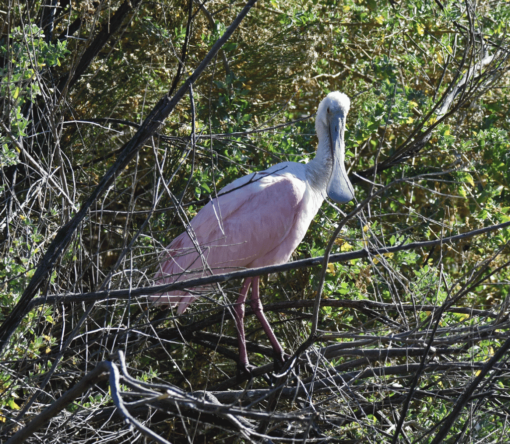 As we worked our way along the road, we had better views of the water. There were distant views of Great and Snowy Egrets, Great Blue, Little Blue and Green Herons along with a Limpkin (a new bird for us.)