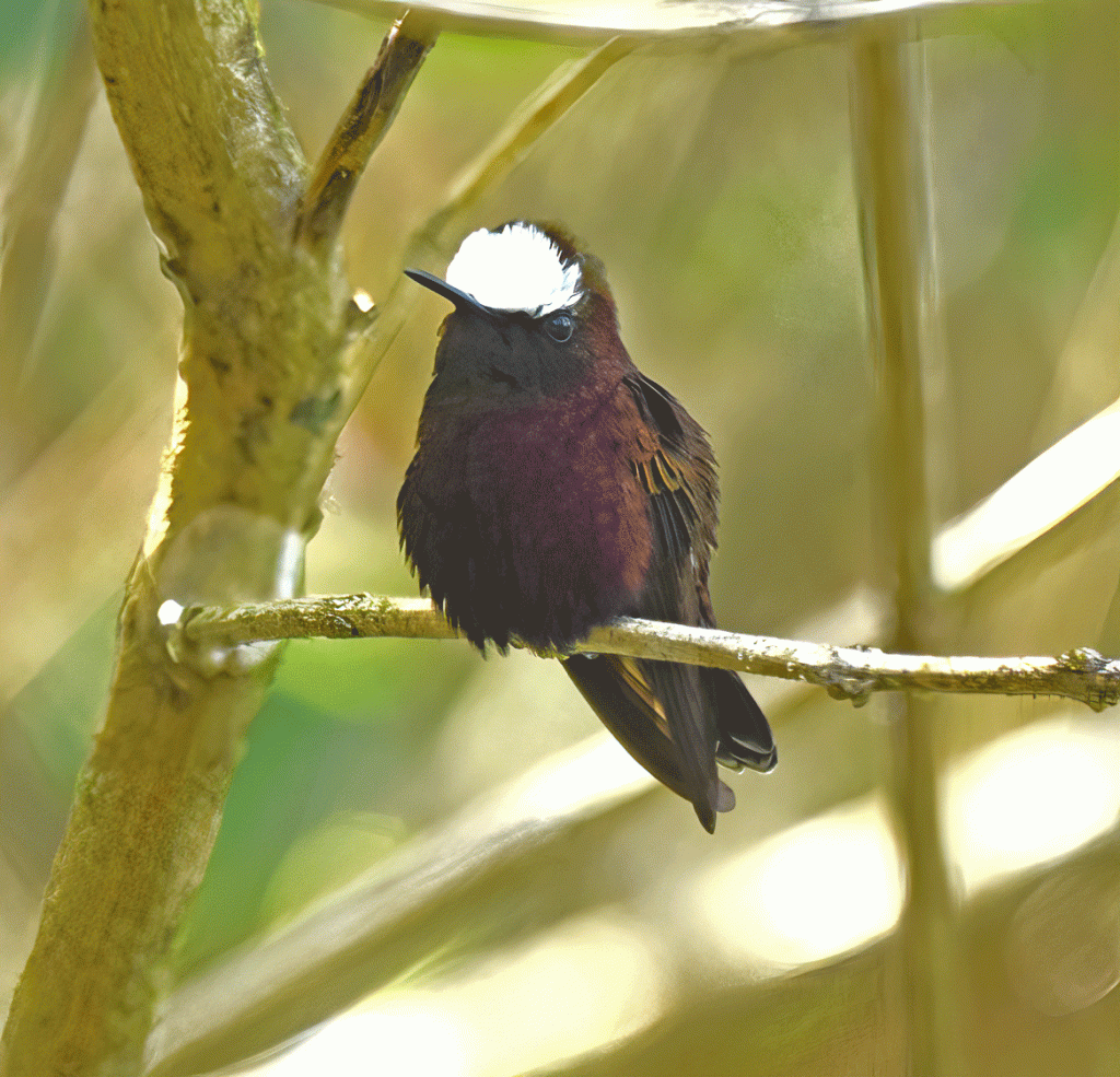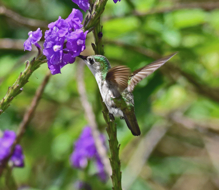 This little hummingbird is aptly called a Snowcap. It’s a little smaller than the Rufous Hummingbird that we have in the summer in BC. It also liked to visit the verbena flowers and the perches of the nearby bushes. We also saw a Black-crested Coquette, but it was very skittish and difficult to photograph.