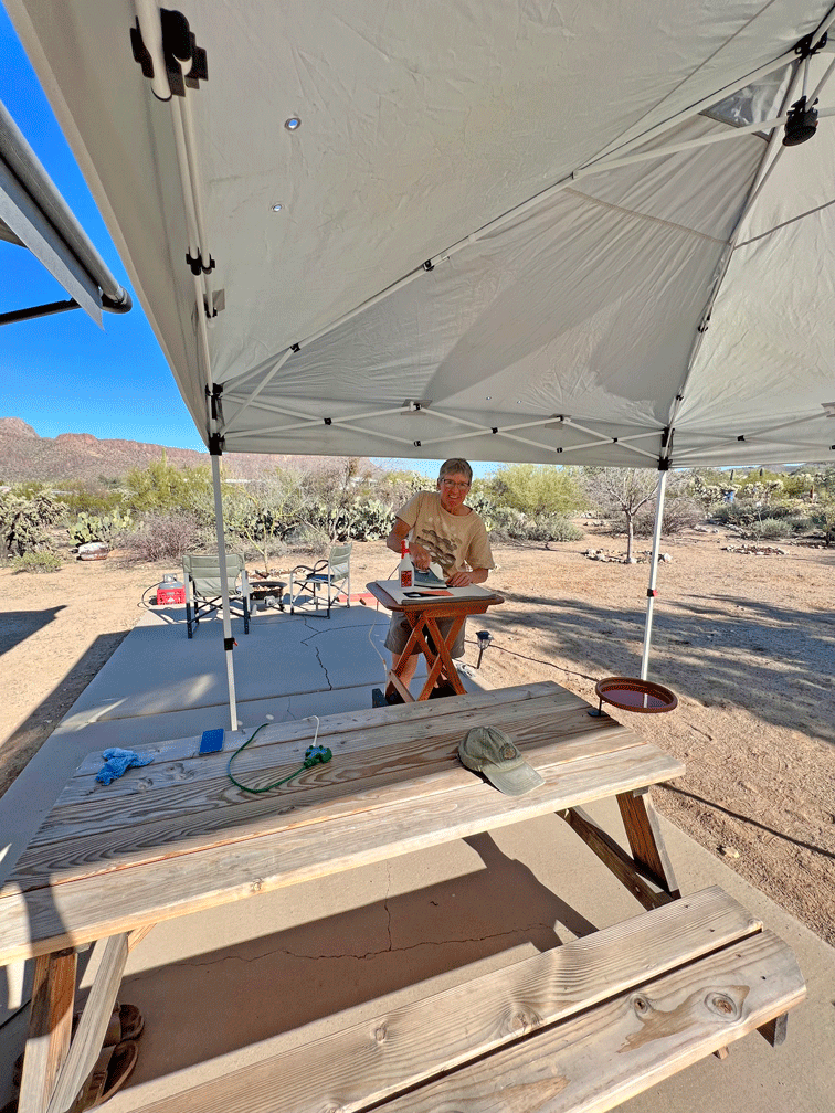 The toucan was so far away (about 200 metres) that the best view of it was through the scope. In the photo below, Wendy is taking a picture with her iPhone through the scope (digiscoping.) The photo was okay, but not as good as the one that Doug took with his telephoto lens.