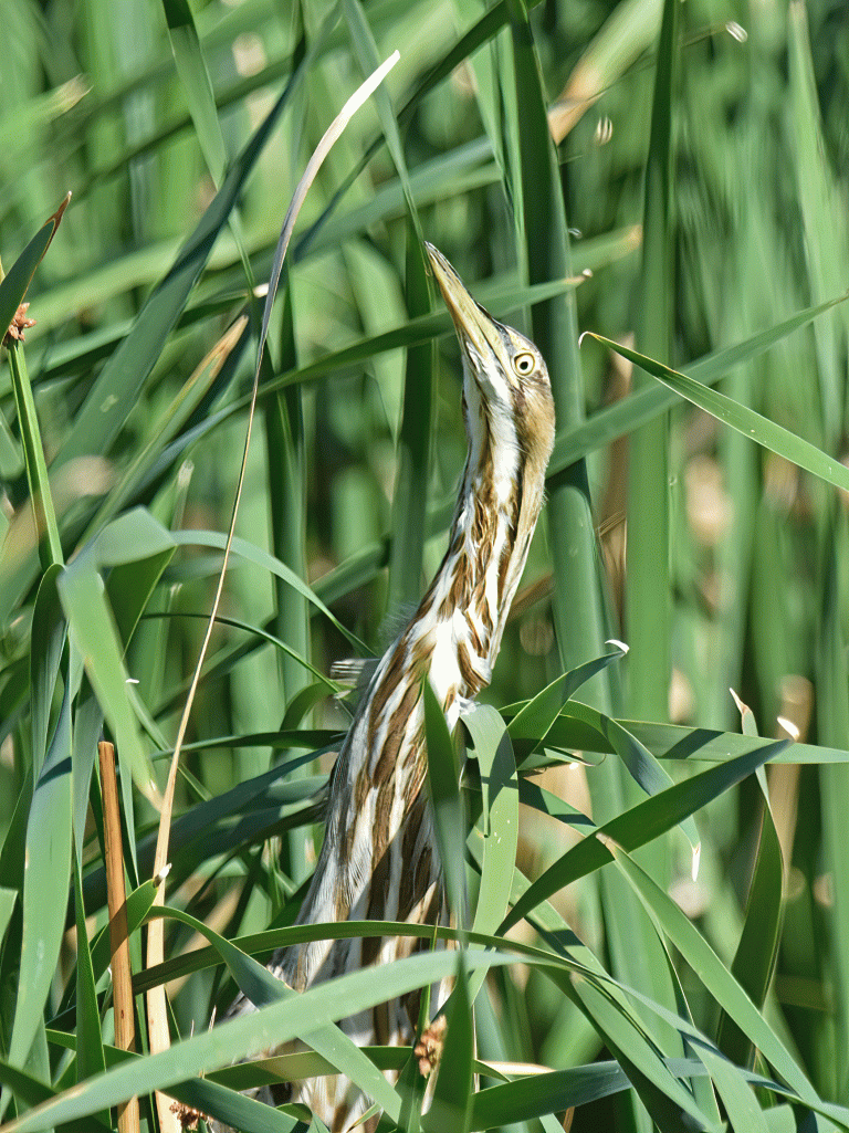 We saw an American Bittern more times this year than we ever had before. This sighting was extra special for us because we were by ourselves when we saw the bird fly into the reeds. On all the other times, other people had seen the bird first and pointed it out. Here’s a photo of the bittern in its “You can’t see me, I’m just another reed” pose.