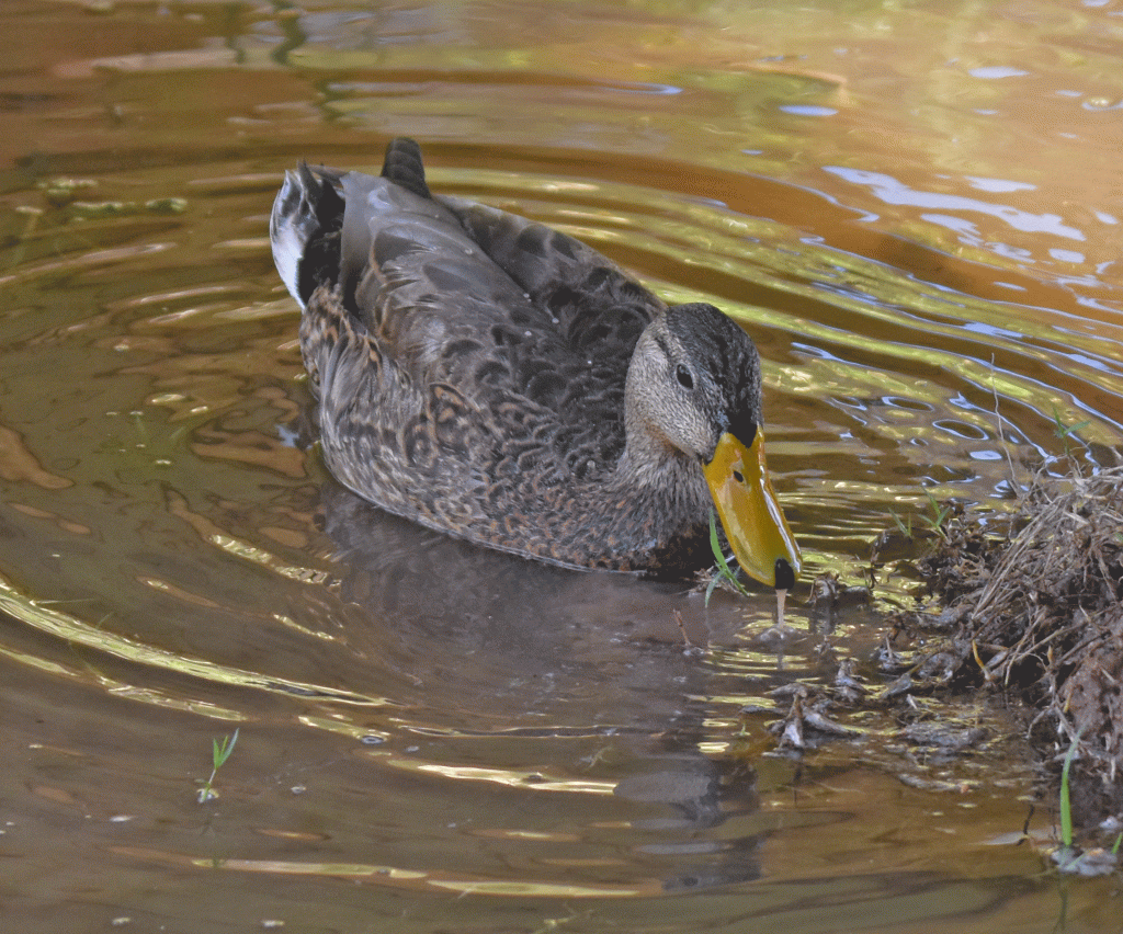 This male Mexican Duck was feeding in a small stream. His plumage is similar to a female Mallard, but he has the characteristic yellow bill of a male. Until recently, Mexican Ducks were considered a sub-species of Mallards.