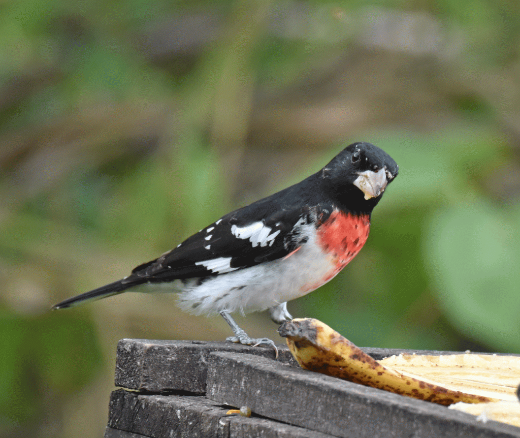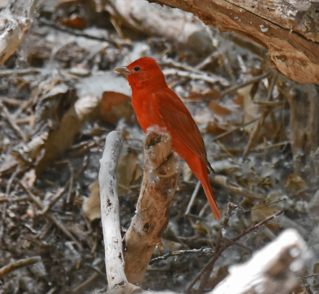 This Summer Tanager has returned to the area. Summer Tanagers are long-distance neotropical migrants that winter in southern Mexico and northwest South America. Their favourite foods are bees and wasps.