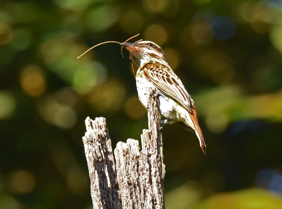 We made a last visit to Tubac, about an hour an a half south of Tucson. The female Rose-throated Becard was building a new nest, so she was easier to locate than other times. Birders come from all over to see this species because they are found in only a few spots in the US.