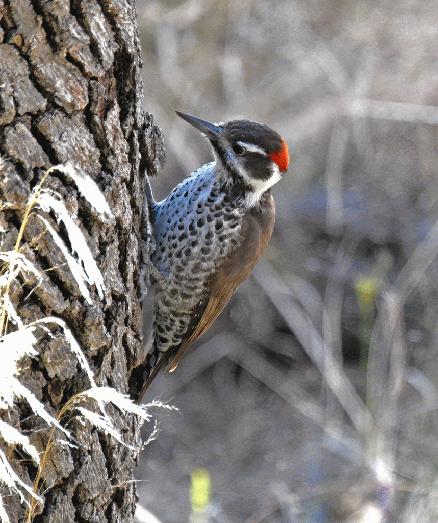 This Arizona Woodpecker was a little more cooperative. It is a little smaller than the Hairy Woodpecker that we are used to seeing in BC and has a brown back.