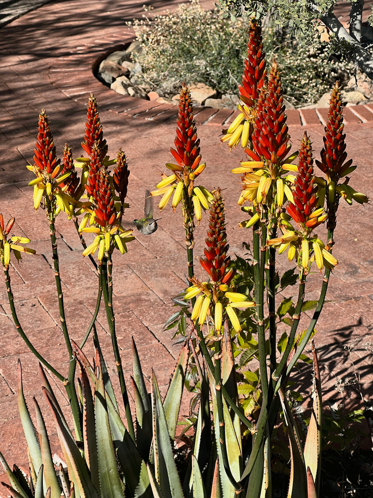 We’ve made it an annual tradition to go to Whitewater Draw, south of Benson, to witness the flocks of Sandhill Cranes. We got there before sunrise after a two hour plus drive and watched thousands take off to forage in the fields. After warming up in the truck, we wandered around to look at other birds and to wait for them to return about midday. Even though the air is warming up, Wendy is wearing just about every piece of clothing that she brought. (Next year: down jackets!) There were White-crowned Sparrows in almost every bush and we saw a large flock of Yellow-headed Blackbirds take off.