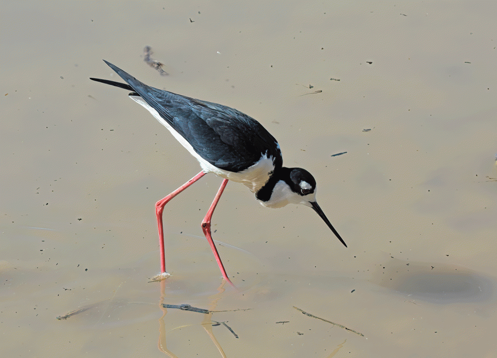 Black-necked Stilts also like the shallow waters. Their plumage doesn’t change throughout the year.