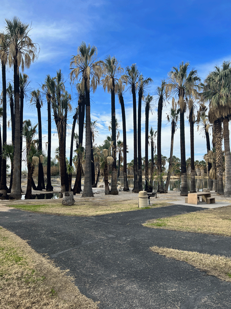 Another day, we visited Agua Caliente Park. It was a former resort that the county bought and converted into a park. Last September, lightening struck palm trees near the Agua Caliente Spring. Strong winds spread the fire but the firefighters had it under control in a couple of hours. Some of the trees had to be removed because they were too damaged to flourish and hopefully the rest of them will survive. This area is fenced off while the vegetation recovers.