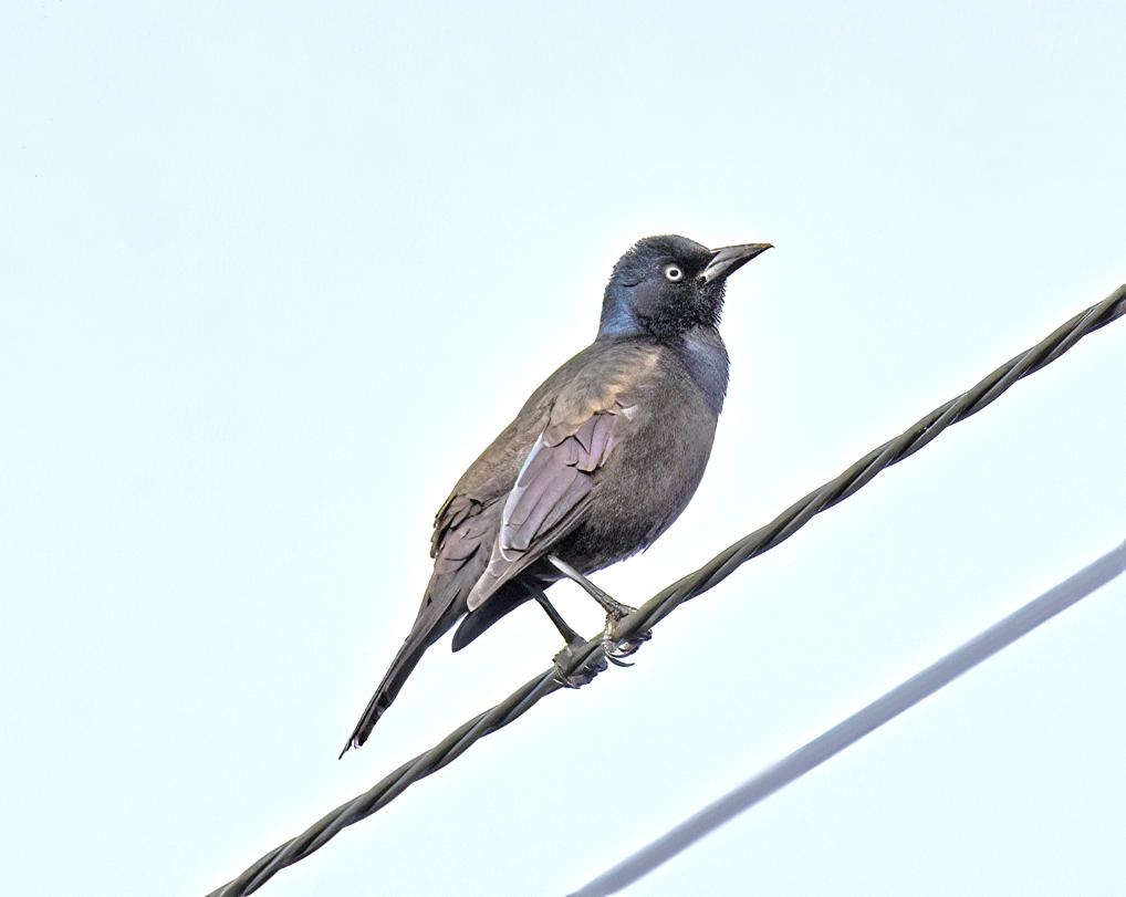The next day, our target bird was a Common Grackle. We knew the area that one had been seen, and we had attempted to find it at the end of December, but we had yet to see it. In fact, we had never seen a Common Grackle. When we got to the spot and realized we were the only people there and that the one Common Grackle was among more than a hundred other birds (Great-tailed Grackles, Red-winged Blackbirds, Brewer’s Blackbirds and starlings), we were not very hopeful. There was nothing else to do but examine every grackle that we could see. We kept looking and walking along, hoping for a good view. Luckily, several perched on a wire above us. The farthest one on the right looked a bit different. And on closer inspection, it was the Common Grackle! It stayed in one place long enough for us to get the ‘scope on it and to take photos. It is usually found east of the Rocky Mountains.
