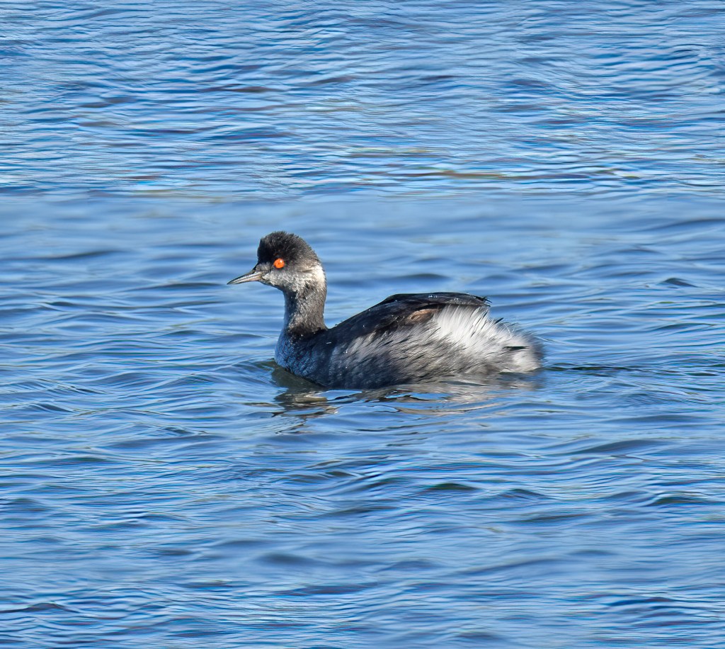 We also wanted to see Eared Grebes, because we hadn’t yet seen them this year. Maybe the ones that winter in Arizona will fly north to BC where we’ll see them when their plumage makes it look like they have “ears.” Their red eye is hard to miss!