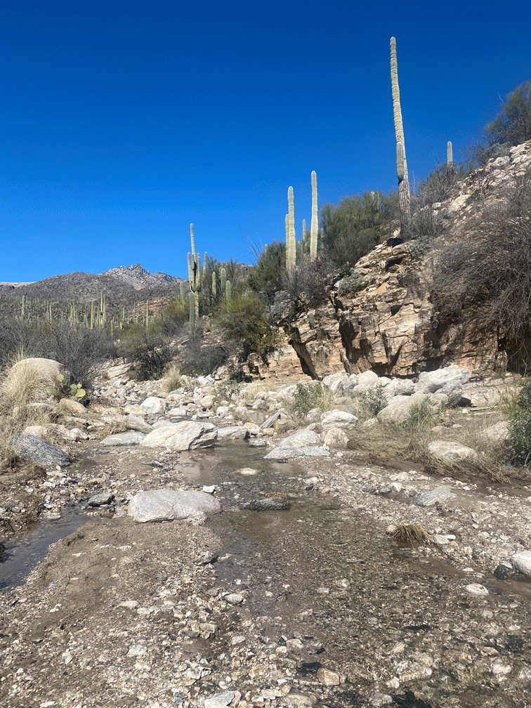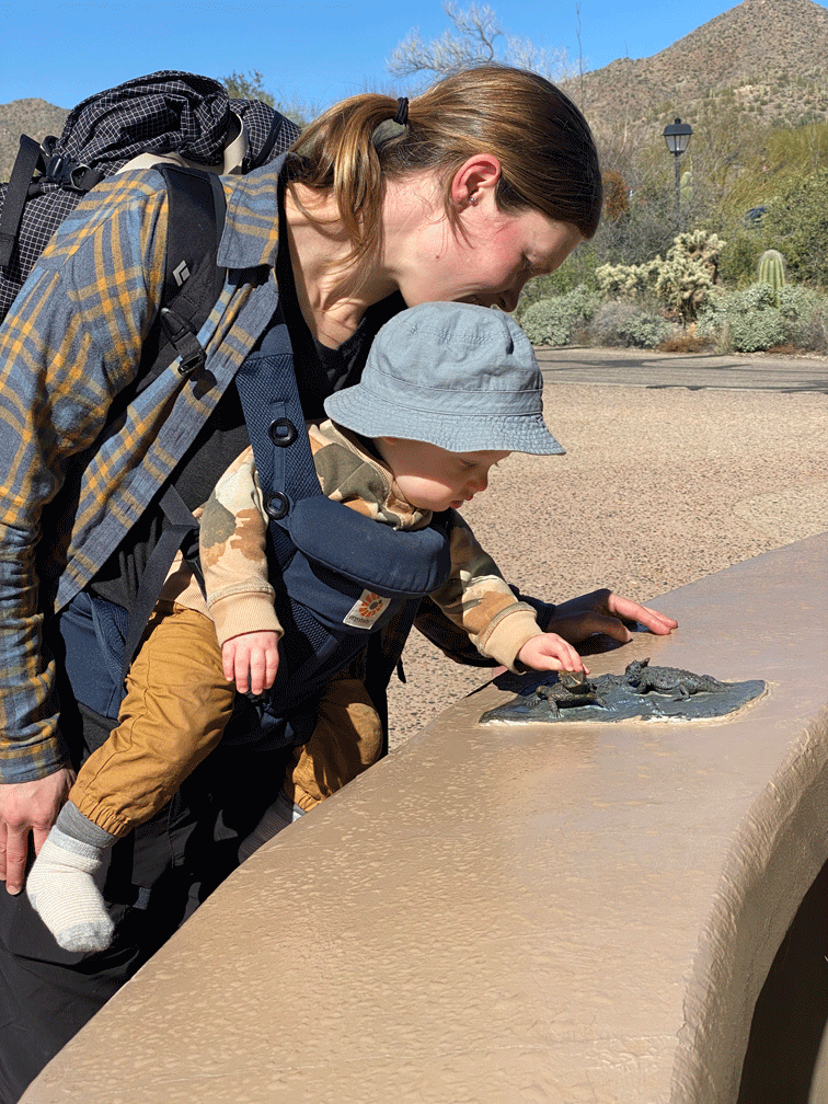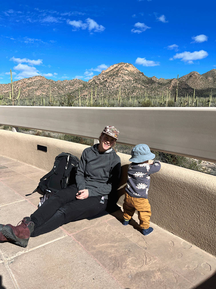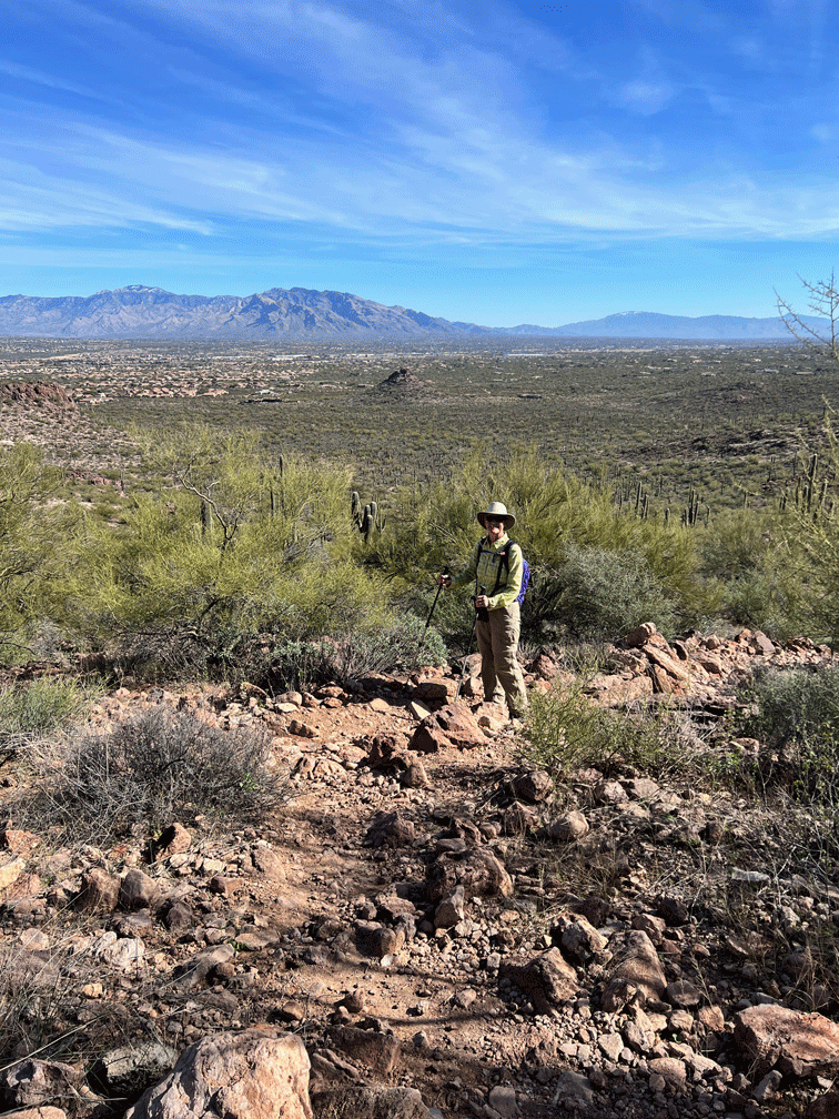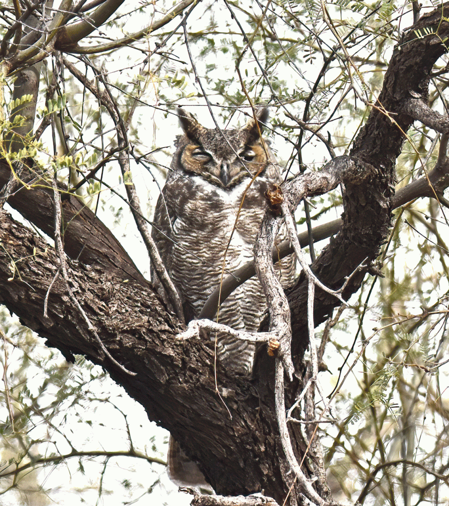 One of our goals for the season is to go birding in new locations. And so we hiked the birding loop trail at Catalina State Park. We saw this roosting Great Horned Owl,