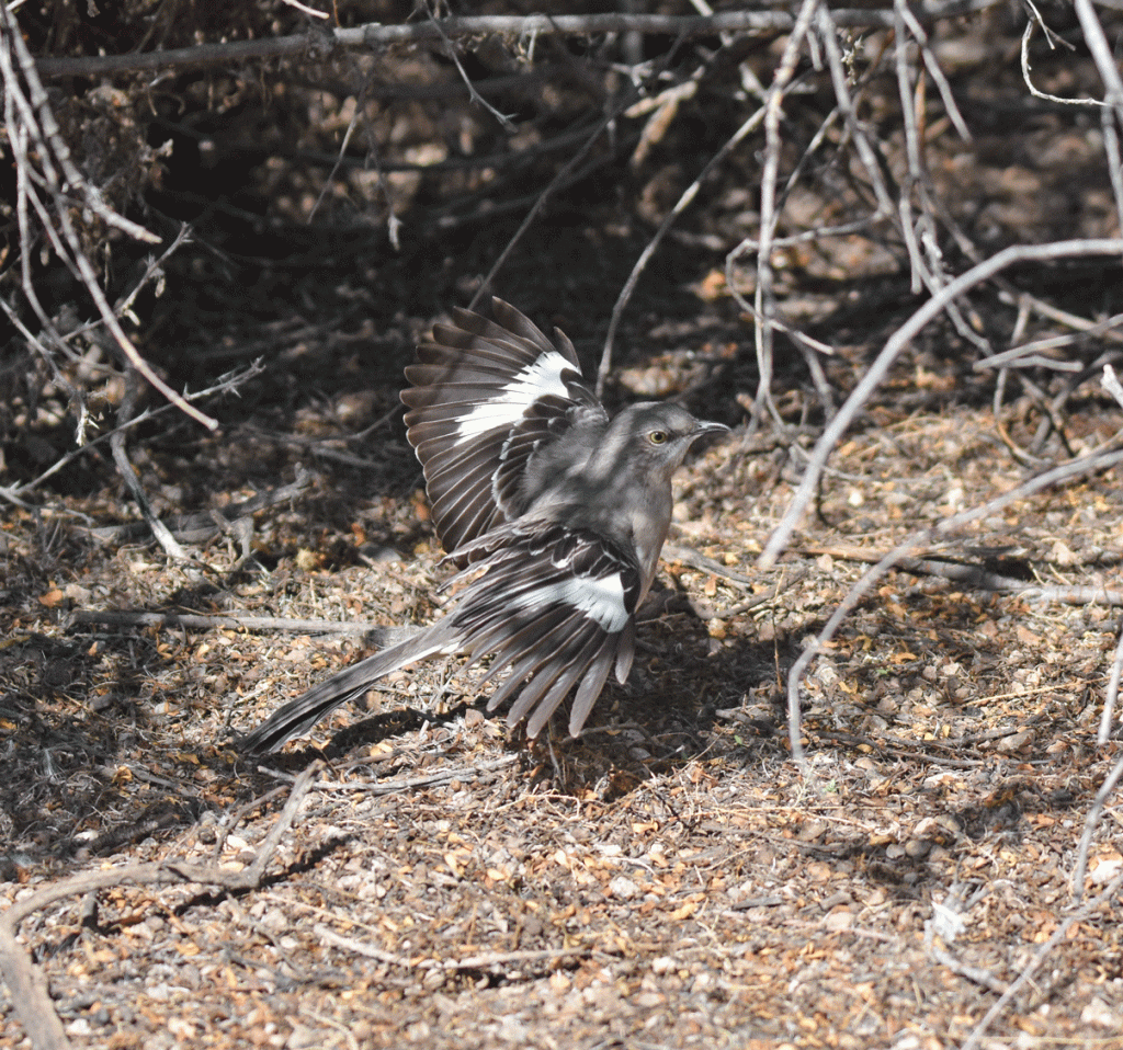 We were lucky enough to see this Northern Mockingbird stretching its wings. When they perch, the white is hardly visible and when they fly … well, it’s usually just a flash that we see.