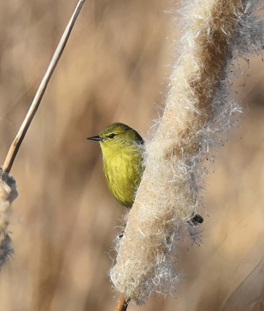 We visited Sweetwater Wetlands a couple of times in January, and are disappointed by the smaller numbers of waterfowl than previous years. We see Orange-crowned Warblers every time we visit and enjoy watching them when they perch on the cattails.