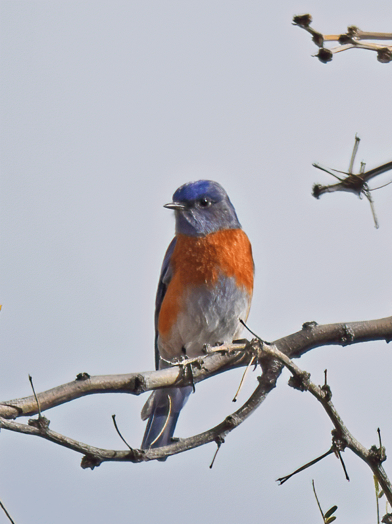 Another day, we drove up Redington Pass where birds that we might expect at home in BC had been spotted. We saw a large flock of Evening Grosbeaks, heard and saw some Cassin’s Finches and were surprised at the large numbers of American Robins. We also saw Western Bluebirds, and Doug got a good photo of this male.