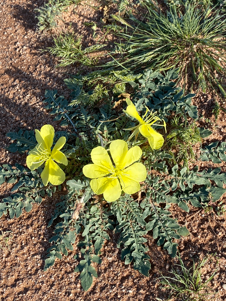 We could tell that the area had had a lot of rain recently, because there were damp patches and puddles. These Desert Evening Primrose flowers were also blooming.