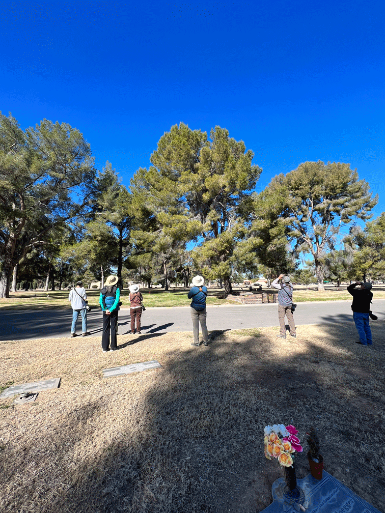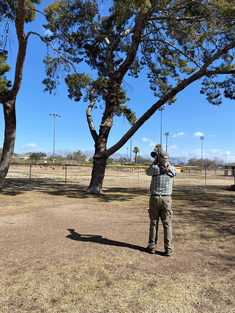 The day after, we went to a trail along a golf course in Green Valley, hoping to see a rare kingbird (Couch’s Kingbird). Our friend had seen it the afternoon before, so we were hopeful that we could too. And there were several other birders with the same high hopes.